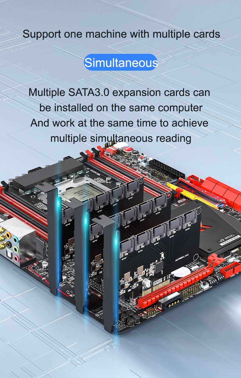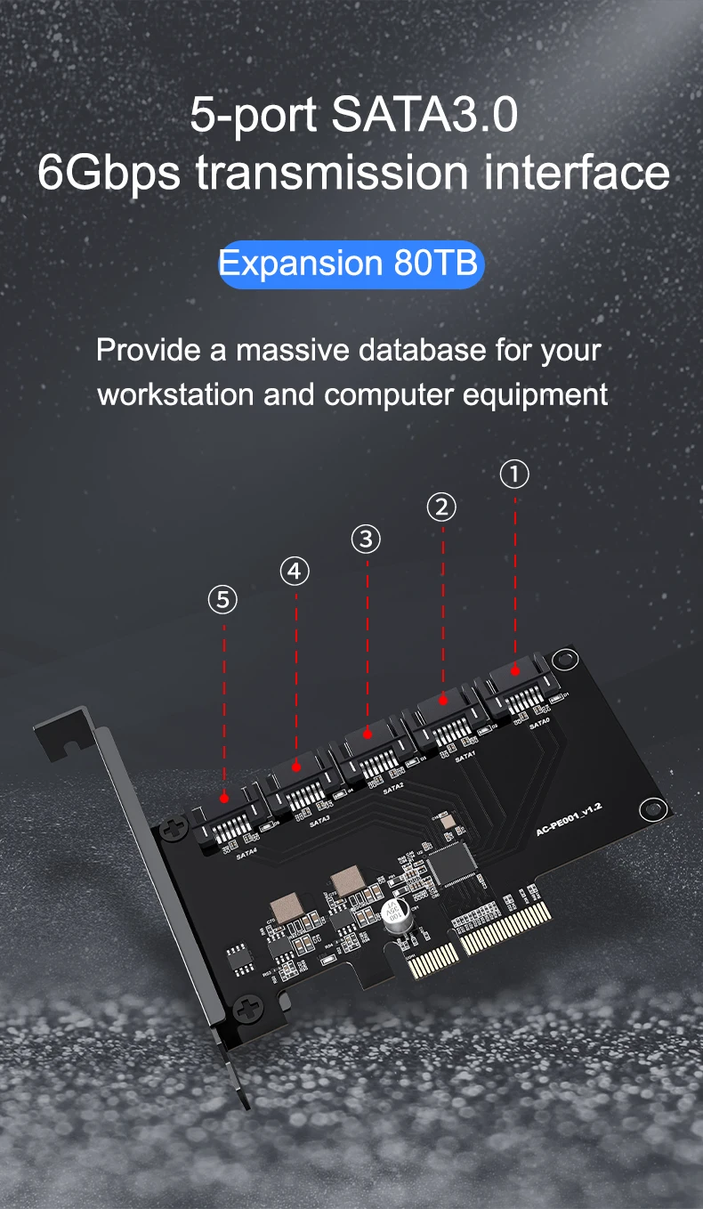 1. Оснащен 5 интерфейсами SATA3.0, в соответствии со спецификацией PCIE-2.0