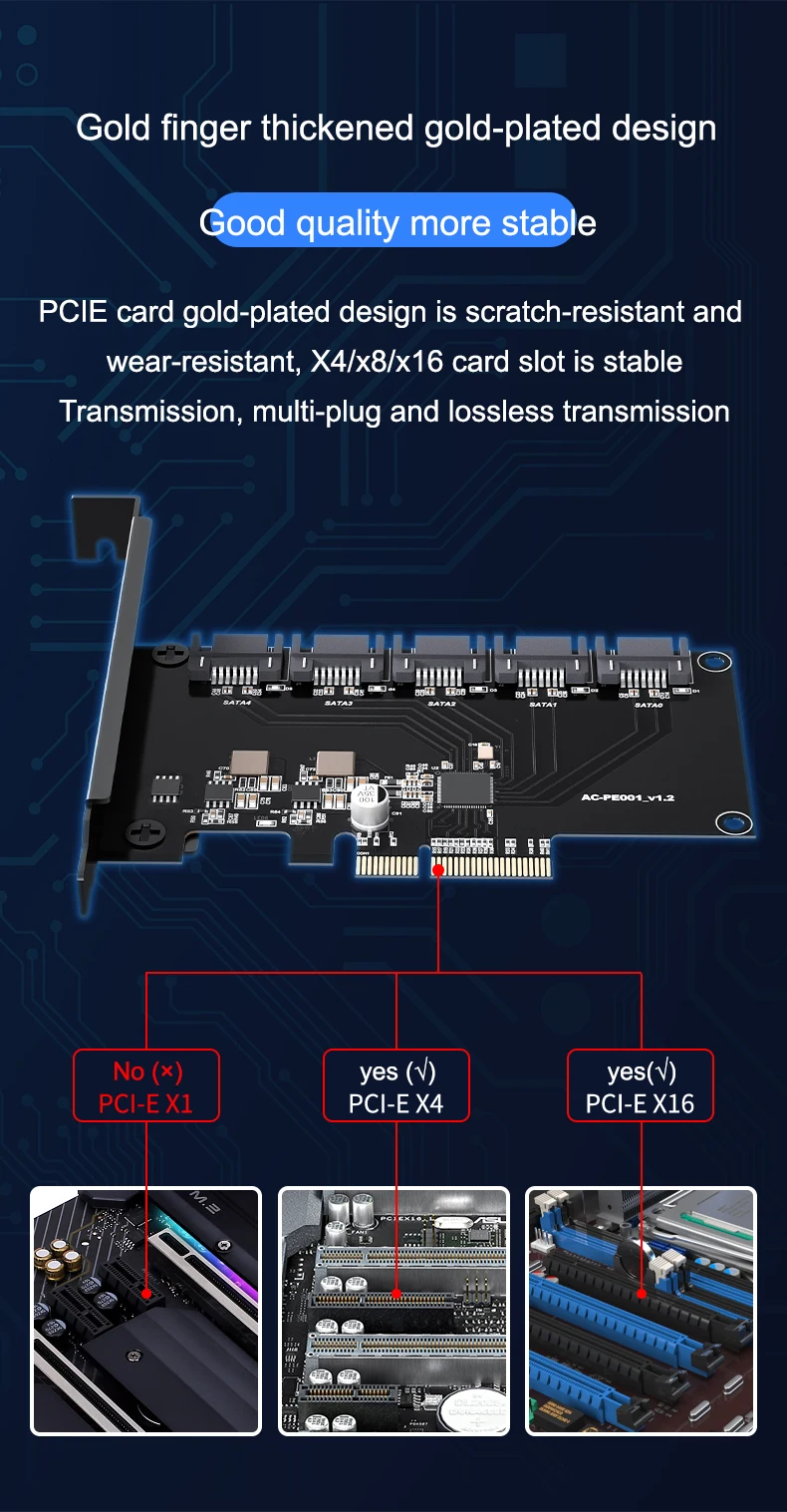 Acasis PCIE SATA 3,0 карта расширения 510 портов 6 ГБ SATA 3,0 PCIeX4 карта PCIe на SATA контроллер карта JMB585 чип