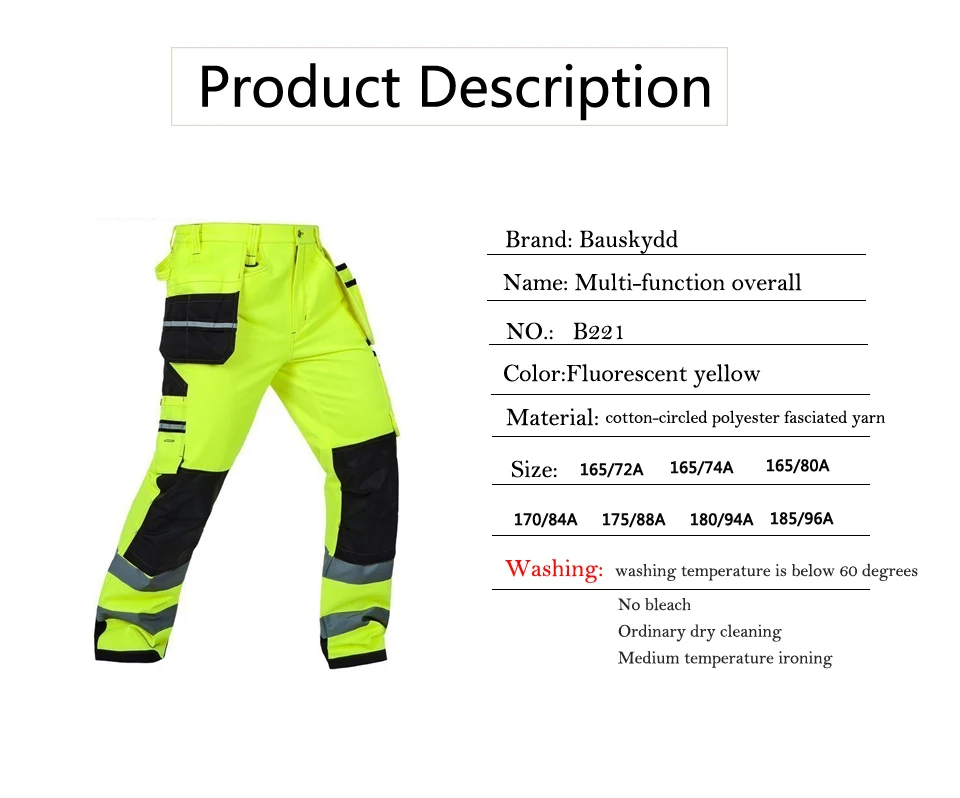 Bauskydd высоковидимые мужские флуоресцентные Желтые Защитные Светоотражающие рабочие брюки-карго с несколькими карманами рабочие брюки