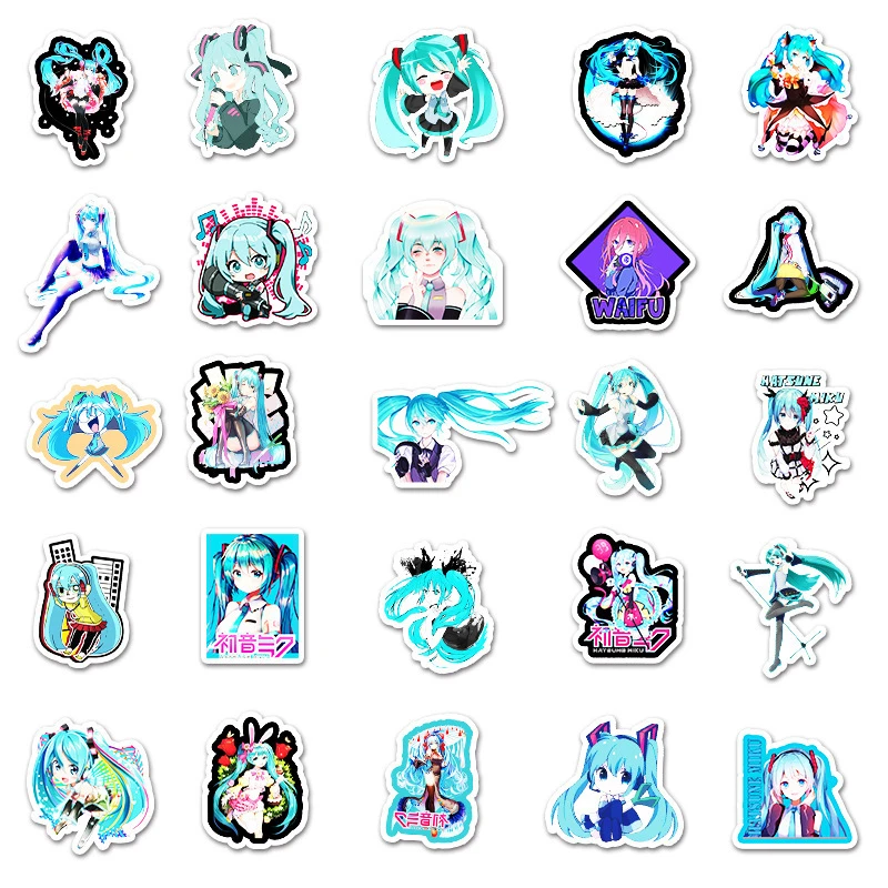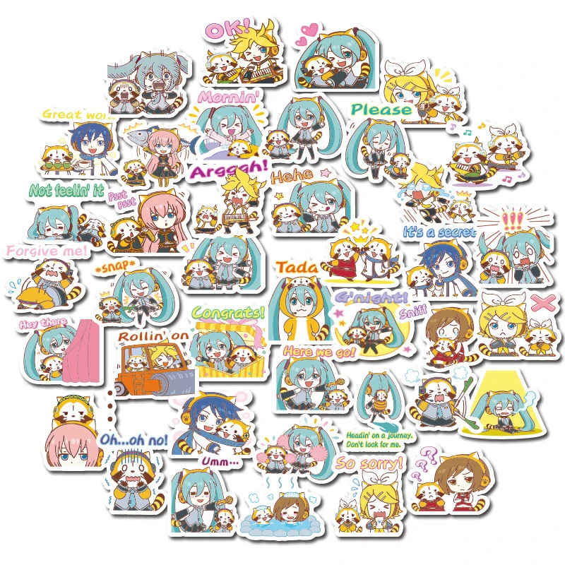 50 шт., водостойкие стикеры Hatsune Miku с изображением героев аниме