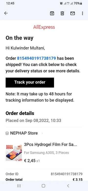 Страна: HU Color: For Samsung A70 Material: 3 Pieces Доставка: Cainiao Super Economy Global 19.09.2022