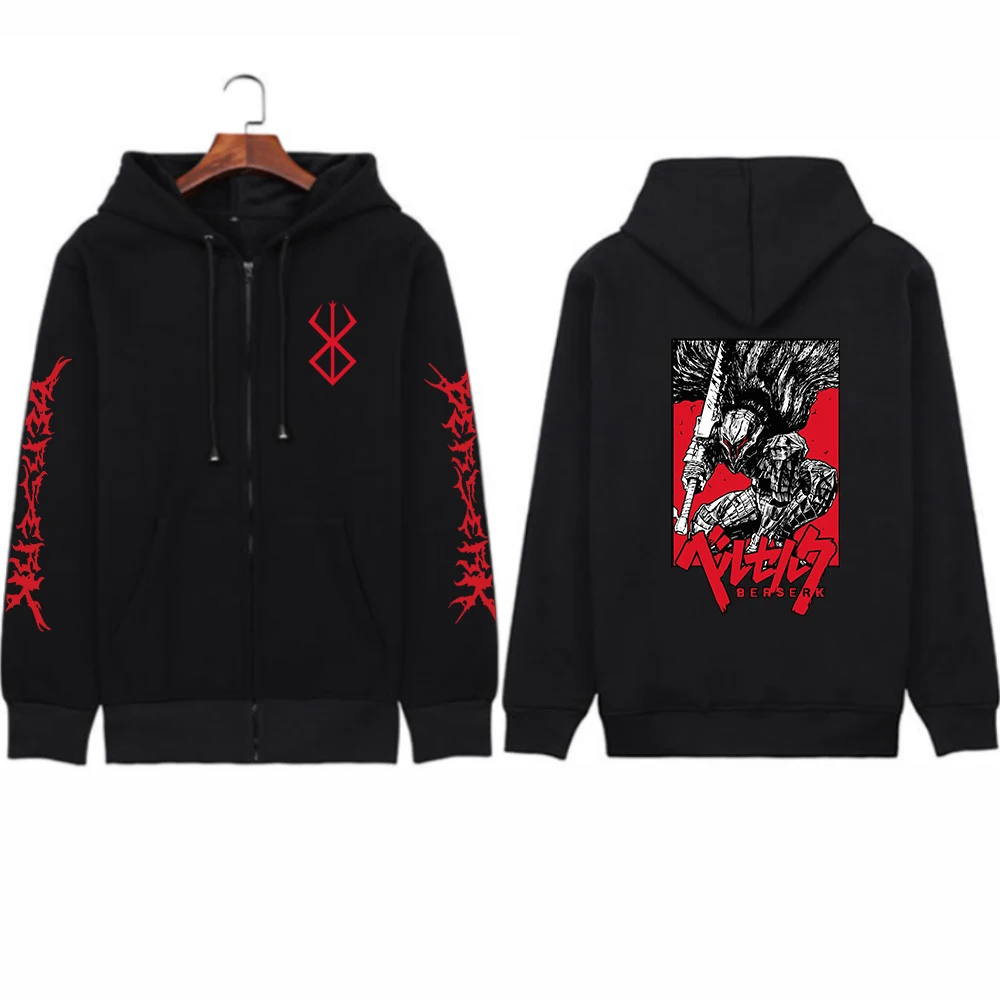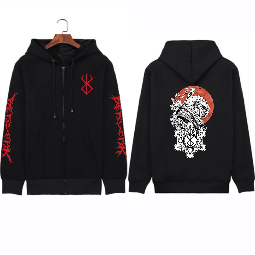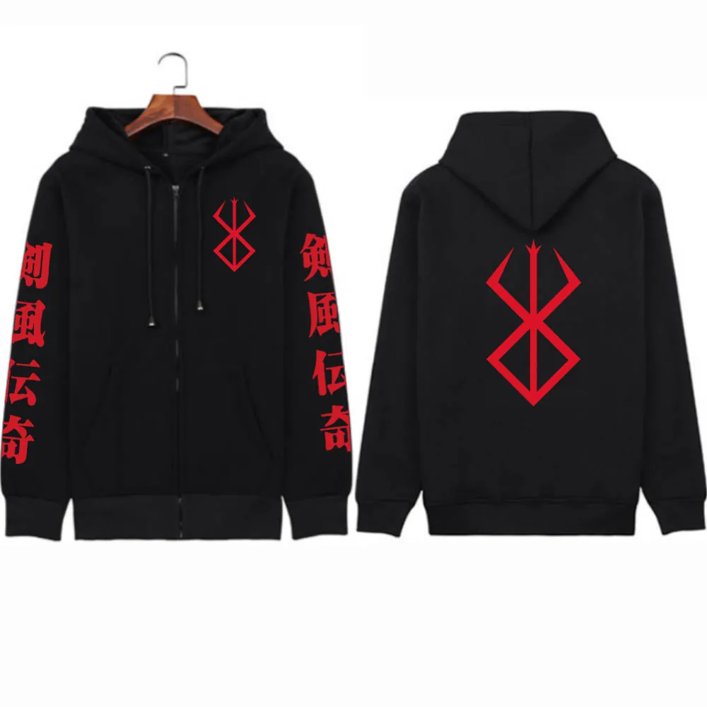 Аниме Толстовка Berserk на молнии пуловер Топы с длинным рукавом повседневные свободные зимние унисекс