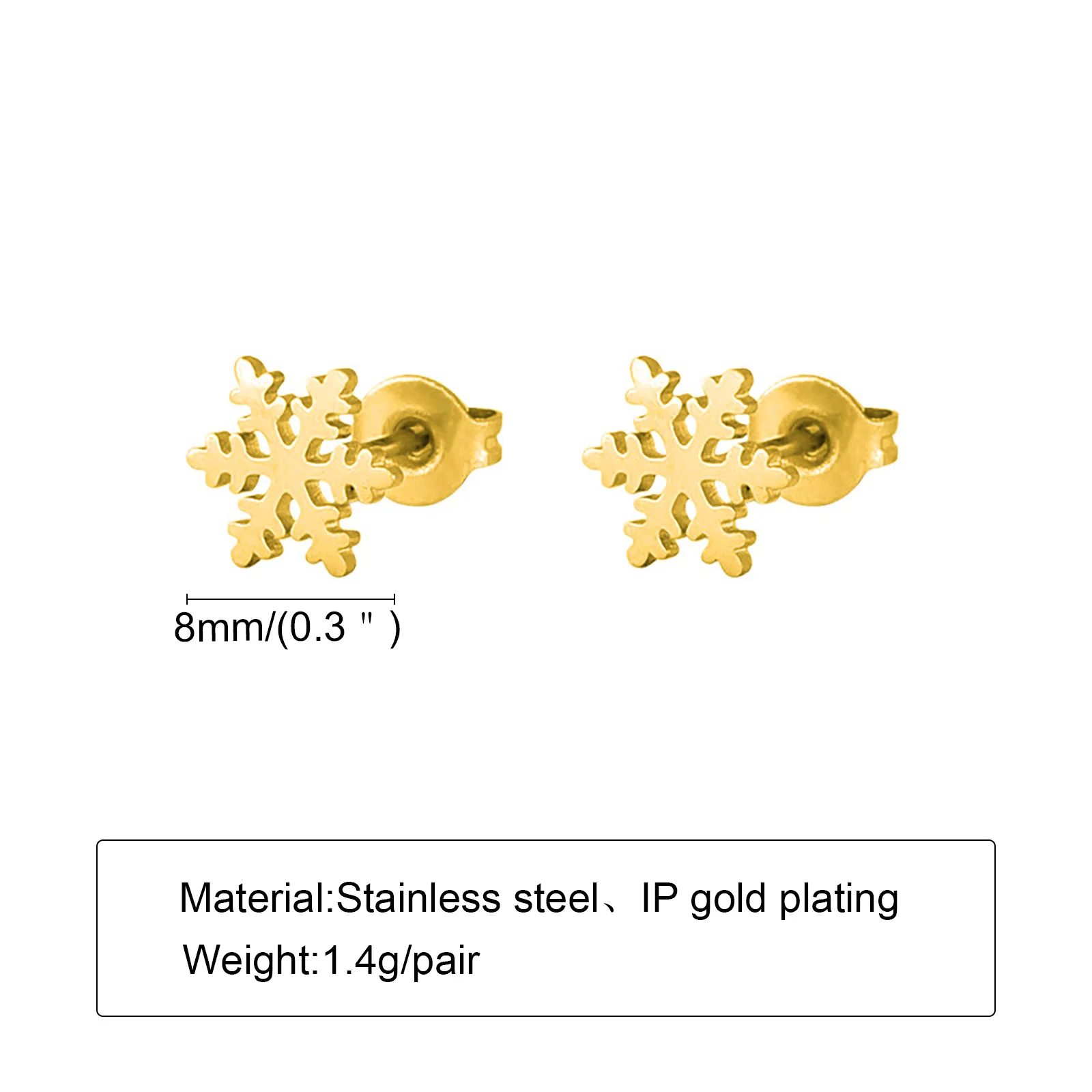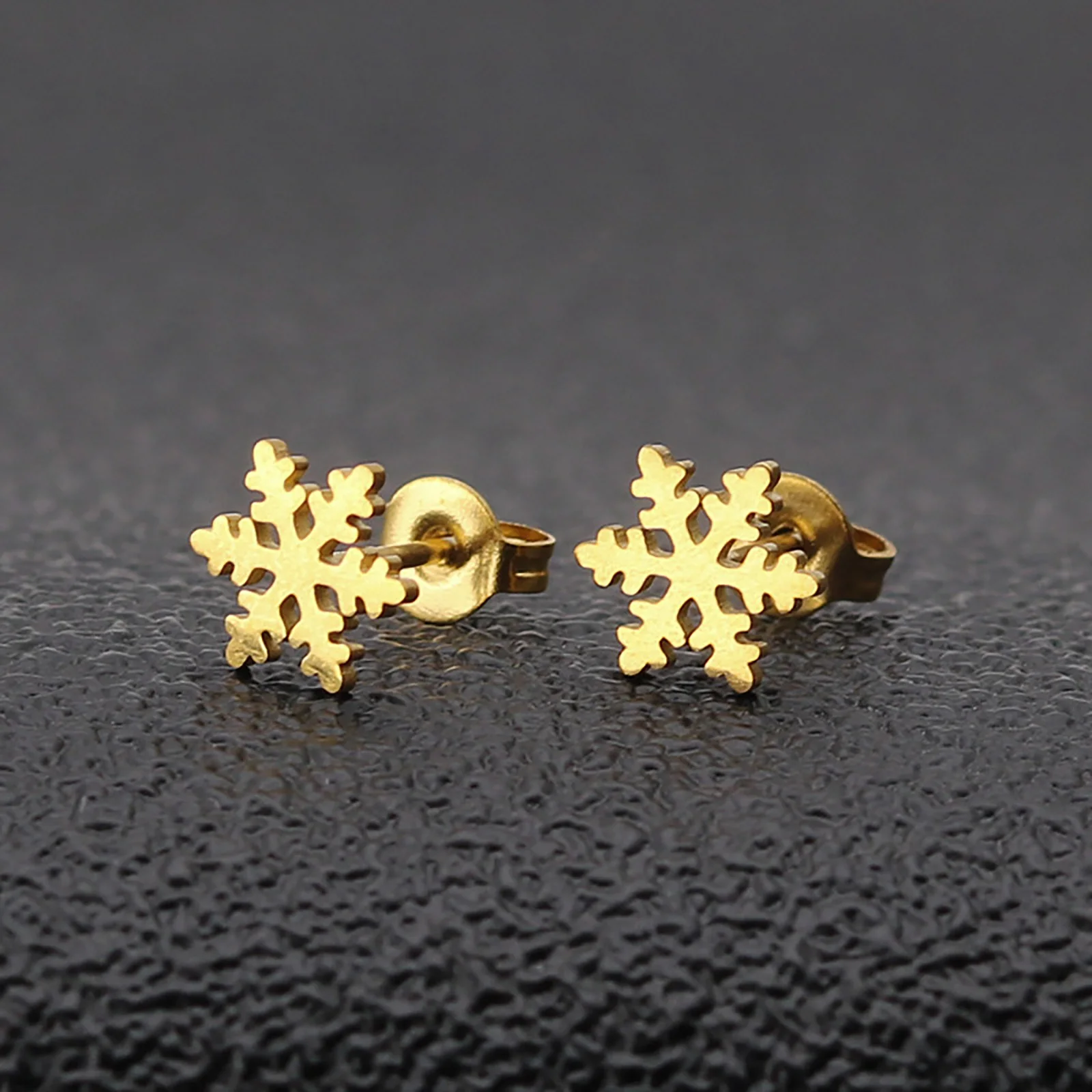3D серьга из снежинки шпильки для женщин, крошечные серьги-гвоздики золотого цвета из нержавеющей стали, рождественский подарок