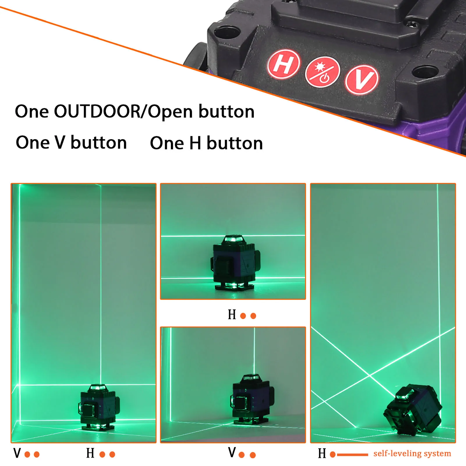 Многофункциональный самонивелирующийся лазерный уровень, 16 линий, 360 градусов