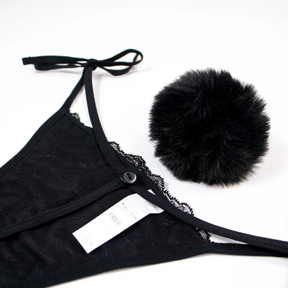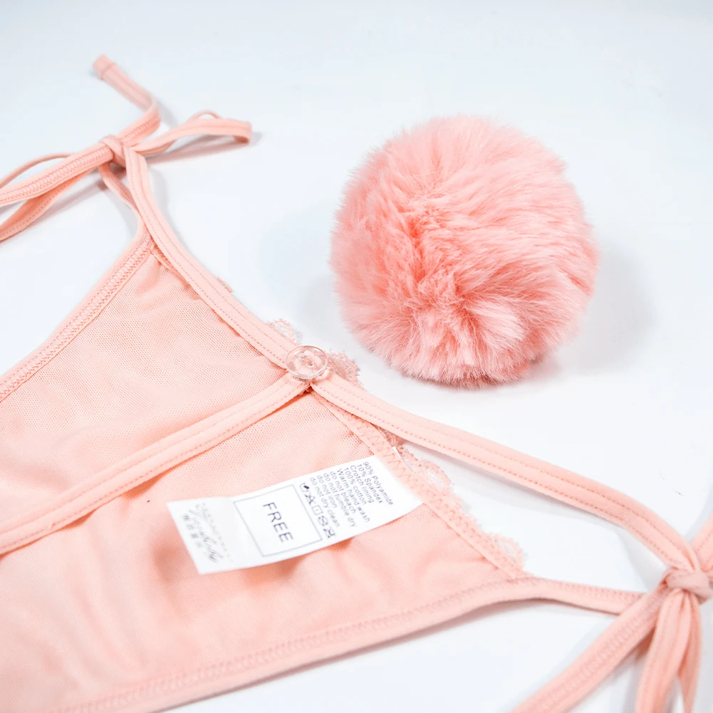 Varsbaby сексуальные съемные плюшевые стринги с кроличьим хвостом, женские удобные регулируемые тонкие праздничные трусики на лямках