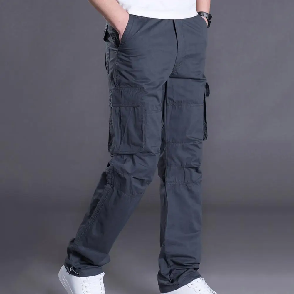 Брюки-карго мужские однотонные, дышащие прямые штаны с множеством карманов, с эластичным поясом, для кемпинга, зимняя одежда