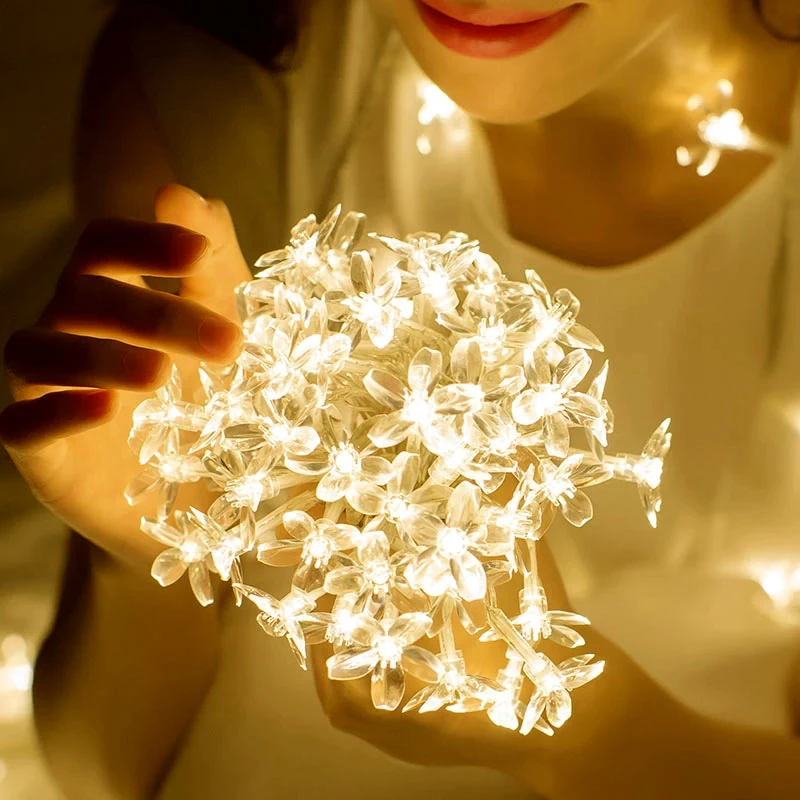 Светодиодная гирлянда с цветами вишни, уличная лампа в виде цветка ...
