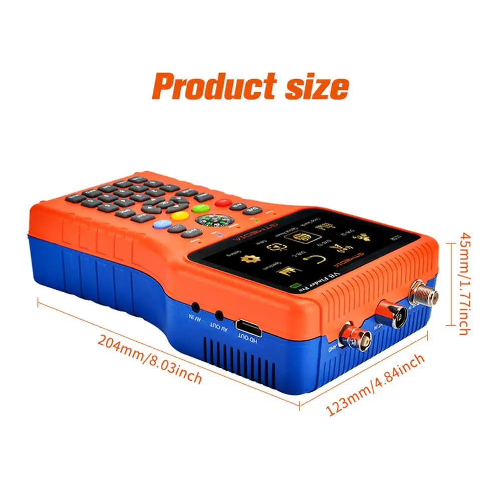 GTMEDIA V8 Finder Pro-это DVB-S2X/S2/S/T2/T/C и MPEG-2/4 H.264/H.265 (10 бит) совместимый ручной комбинированный счетчик, с его компактным размером, легким весом, интуитивно понятным пользовательским интерфейсом, длительным временем работы батареи и богатым набором функций, счетчик предоставляет все функции, необходимые для установки и проверки цифрового спутникового ТВ-сервиса, Антенный сигнал и кабельный сигнал для жилых домов или многожилых единиц.
