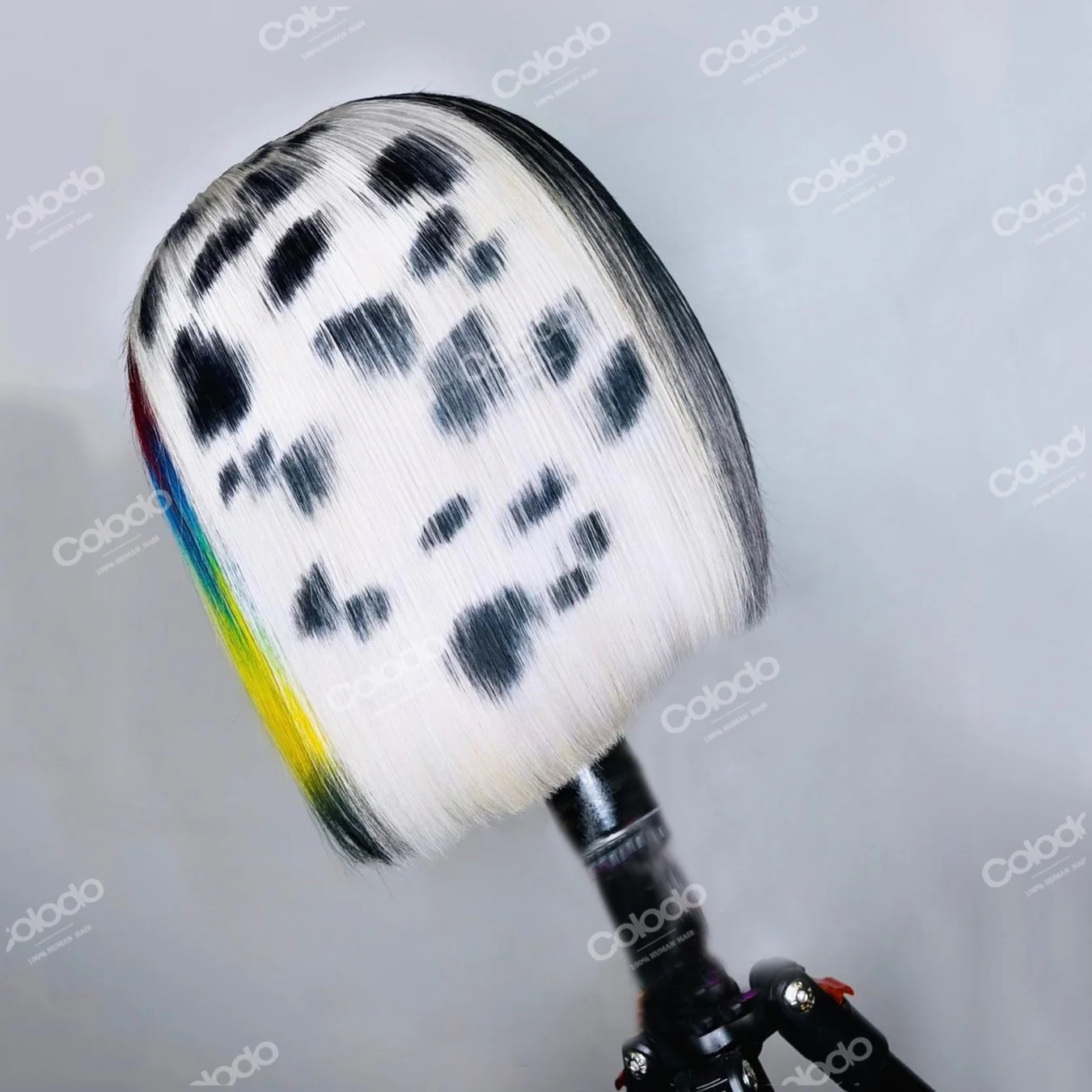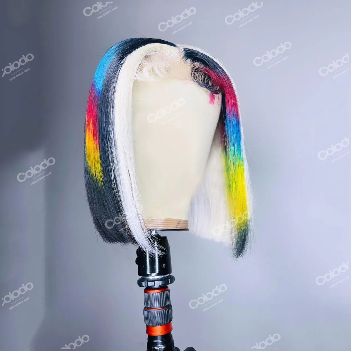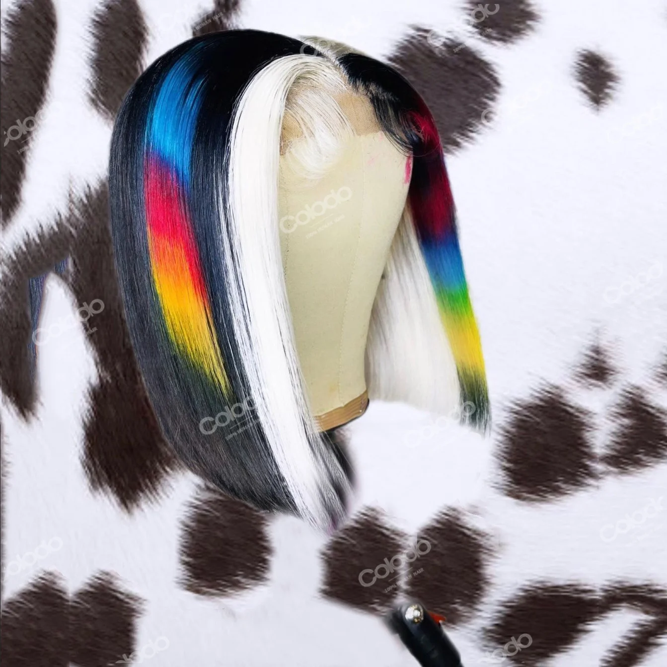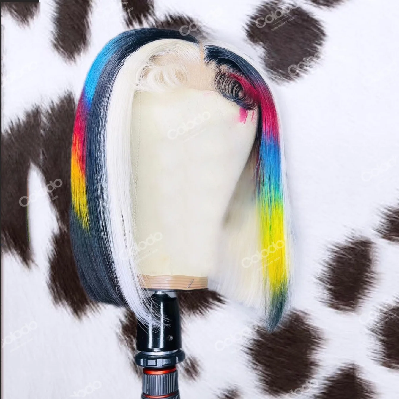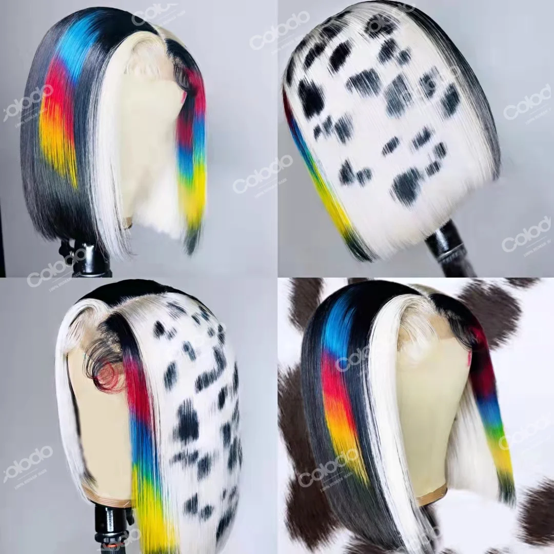 Парик цвета радуги с принтом далматина, предварительно выщипанный парик с Бобом, кружевные передние человеческие волосы, парики с предварительно выщипывающимися бразильскими волосами Remy, прозрачные кружевные парики для женщин