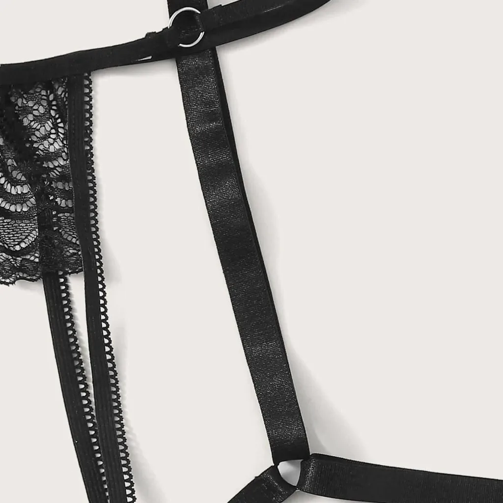 Комплект женского нижнего белья, бюстгальтер с вырезами, стринги, подвязки, сексуальное нижнее белье, прозрачные кружевные эротические костюмы, сексуальная женская одежда