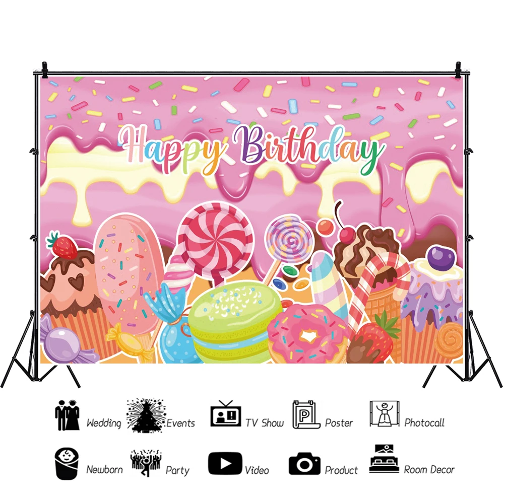 Мультяшные Конфеты Мороженое день рождения фото фон детский душ портрет фотография Фон семейная Вечеринка баннер для фотосессии