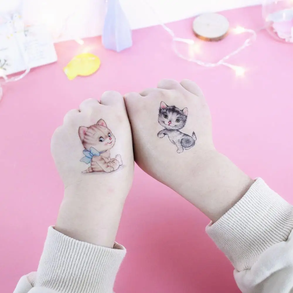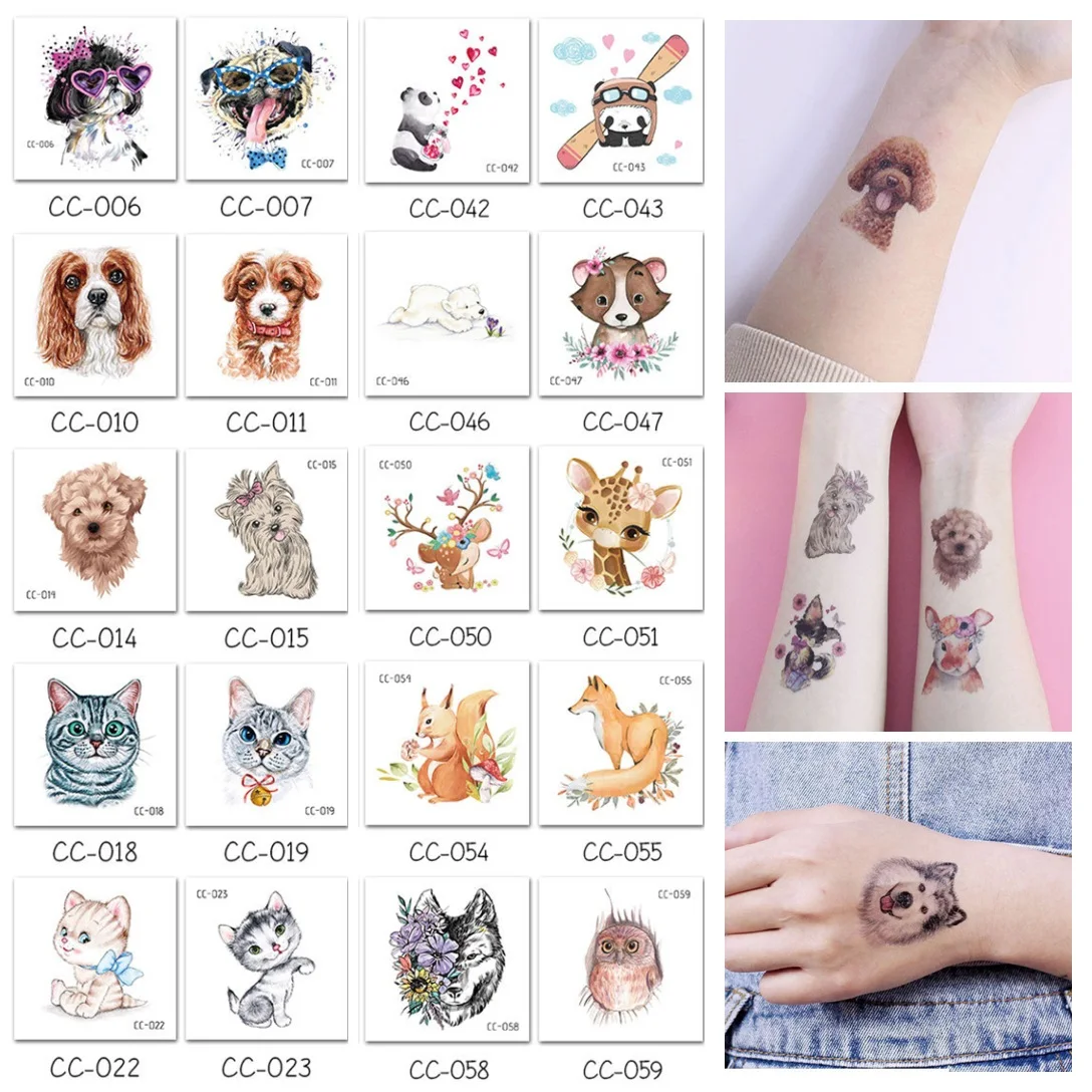 Водостойкие Мультяшные татуировки без повторов, 20 шт.компл., детская вечевечерние, макияж, цветок, кошка, собака, единорог, Бабочка, временное боди-арт, милый питомец