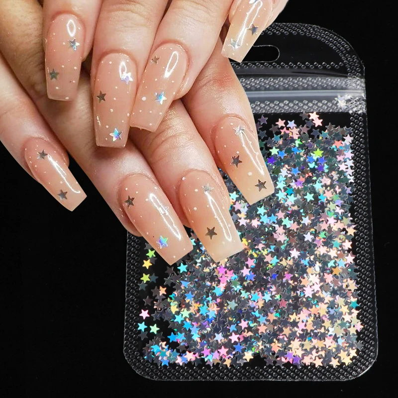Блестки для дизайна ногтей, разноцветные, в форме звезды