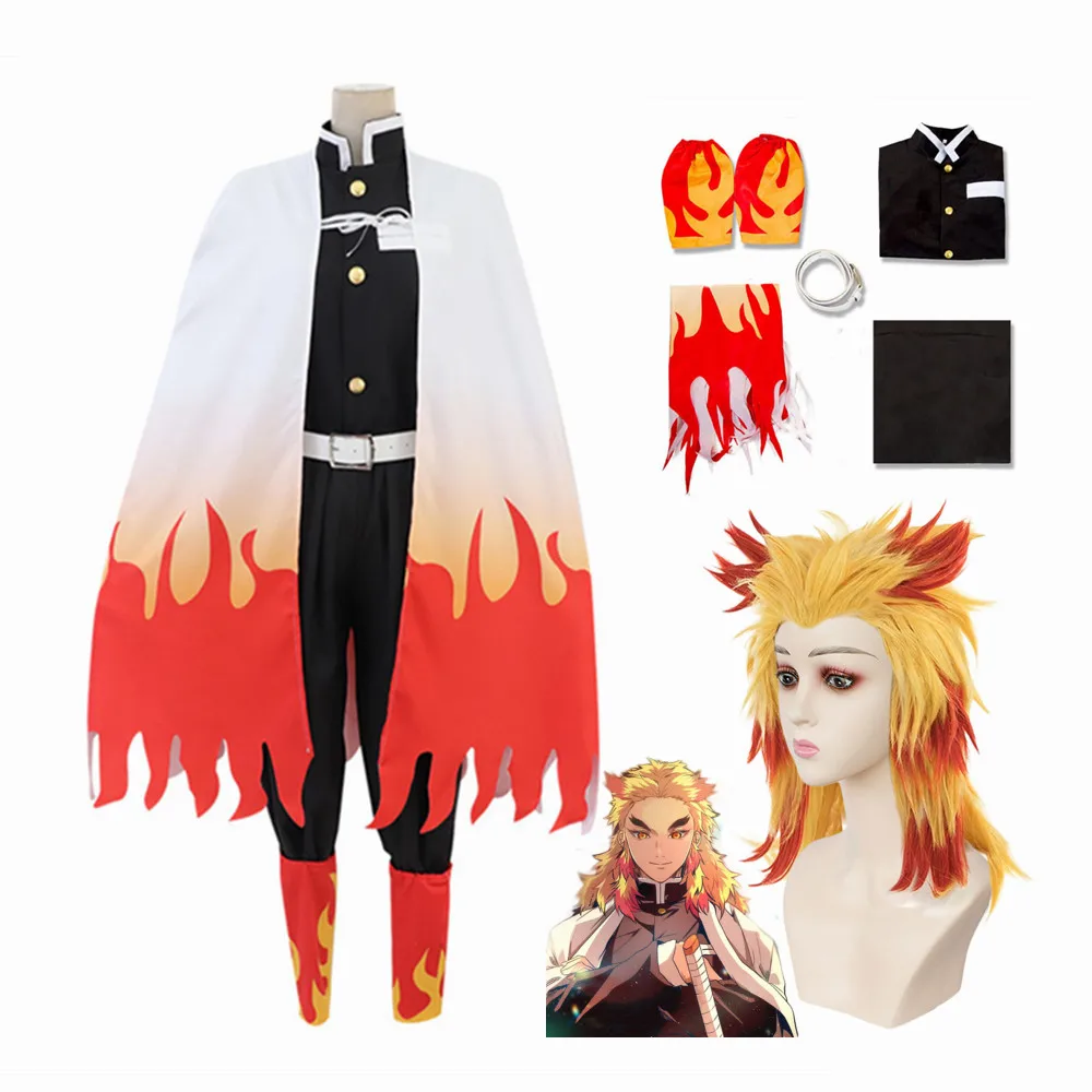 Кимоно для косплея из аниме рассекающий демонов, накидка-кимоно no Yaiba Rengoku Kyoujurou, одежда для Хэллоуина