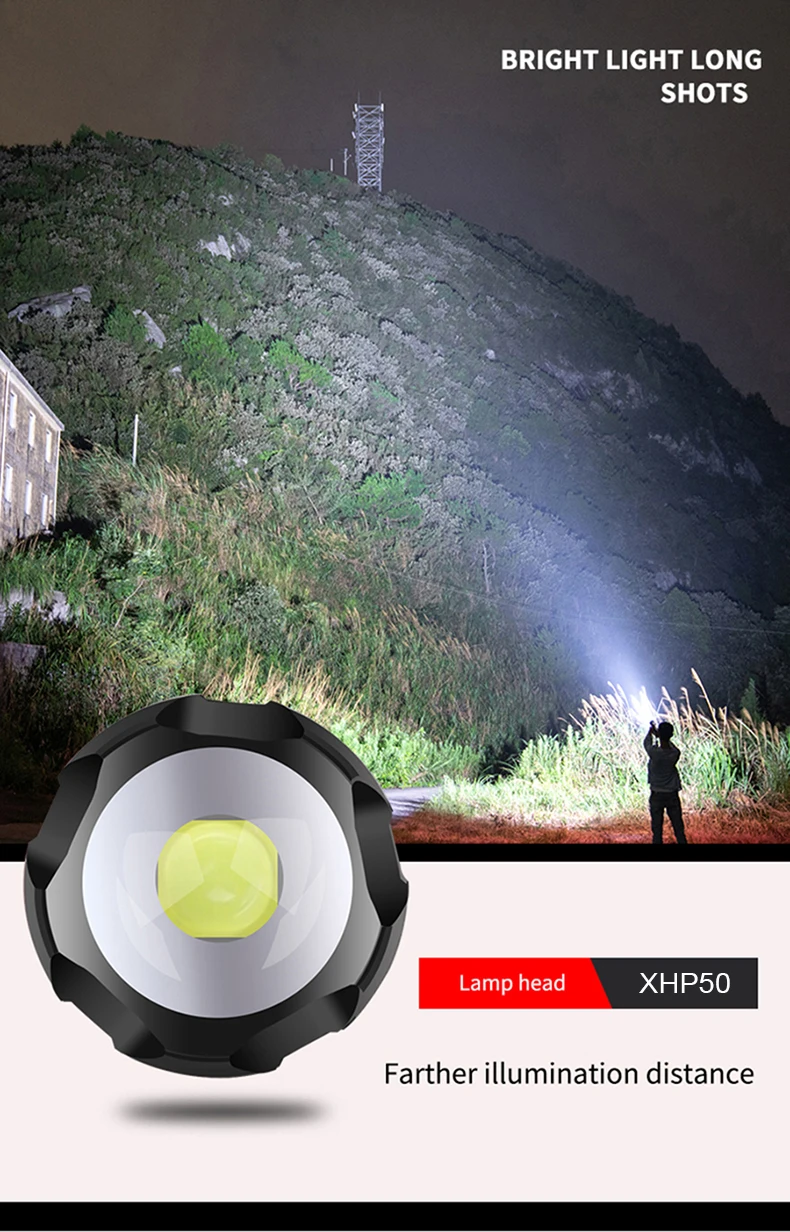 Самый мощный фонарик Xhp50.2, 5 режимов, масштабируемый светодиодный фонарик с аккумулятором 14500, рыболовная аккумуляторная лампа, масштабируемый портативный мини-фонарь Tocrh