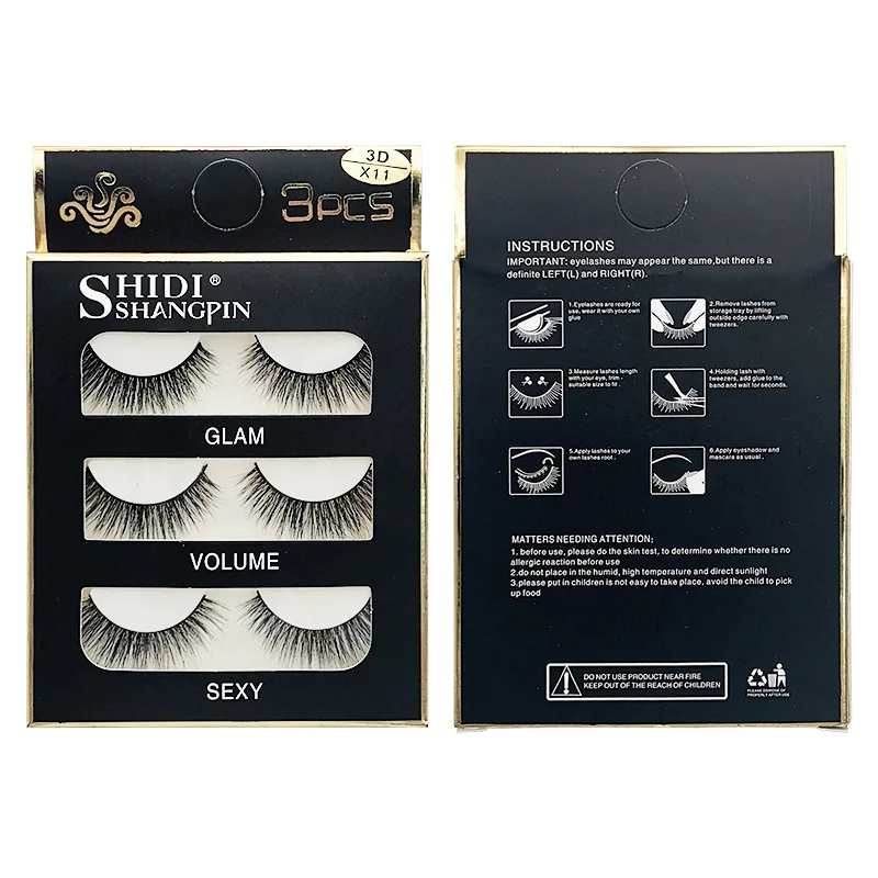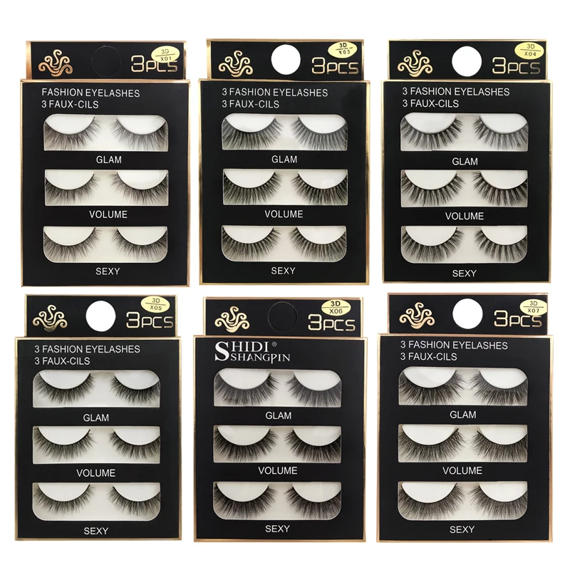 Изделие: 3 пары объемных накладных ресниц из искусственного меха норки.