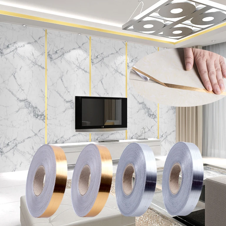 Самоклеящаяся настенная напольная лента для керамической плитки с защитой от плесени, золотистые и Серебристые водостойкие ленты для домашнего декора стен