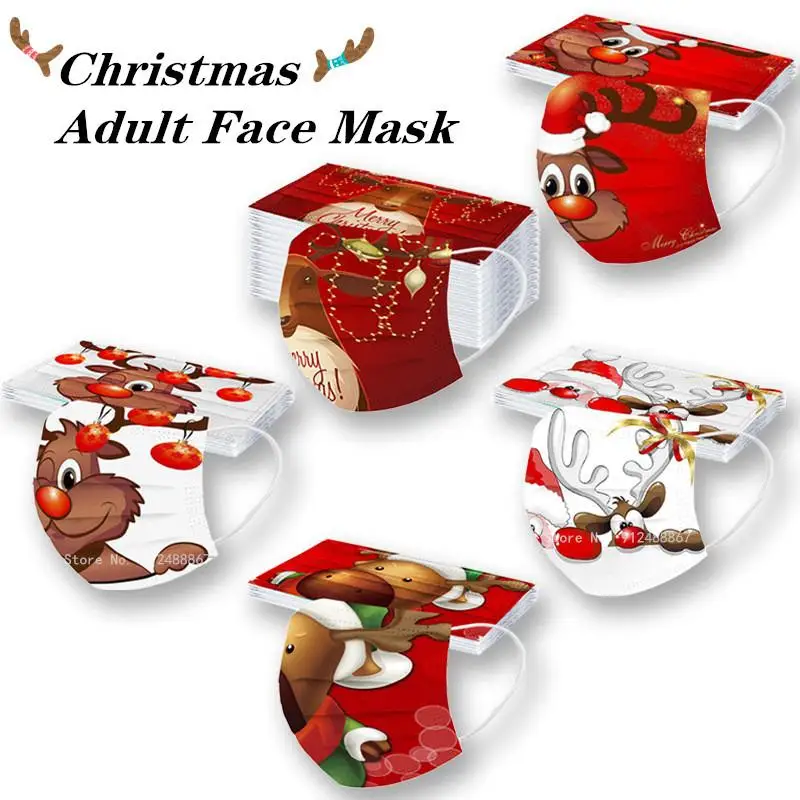 10 шт., одноразовые рождественские маски для взрослых и женщин