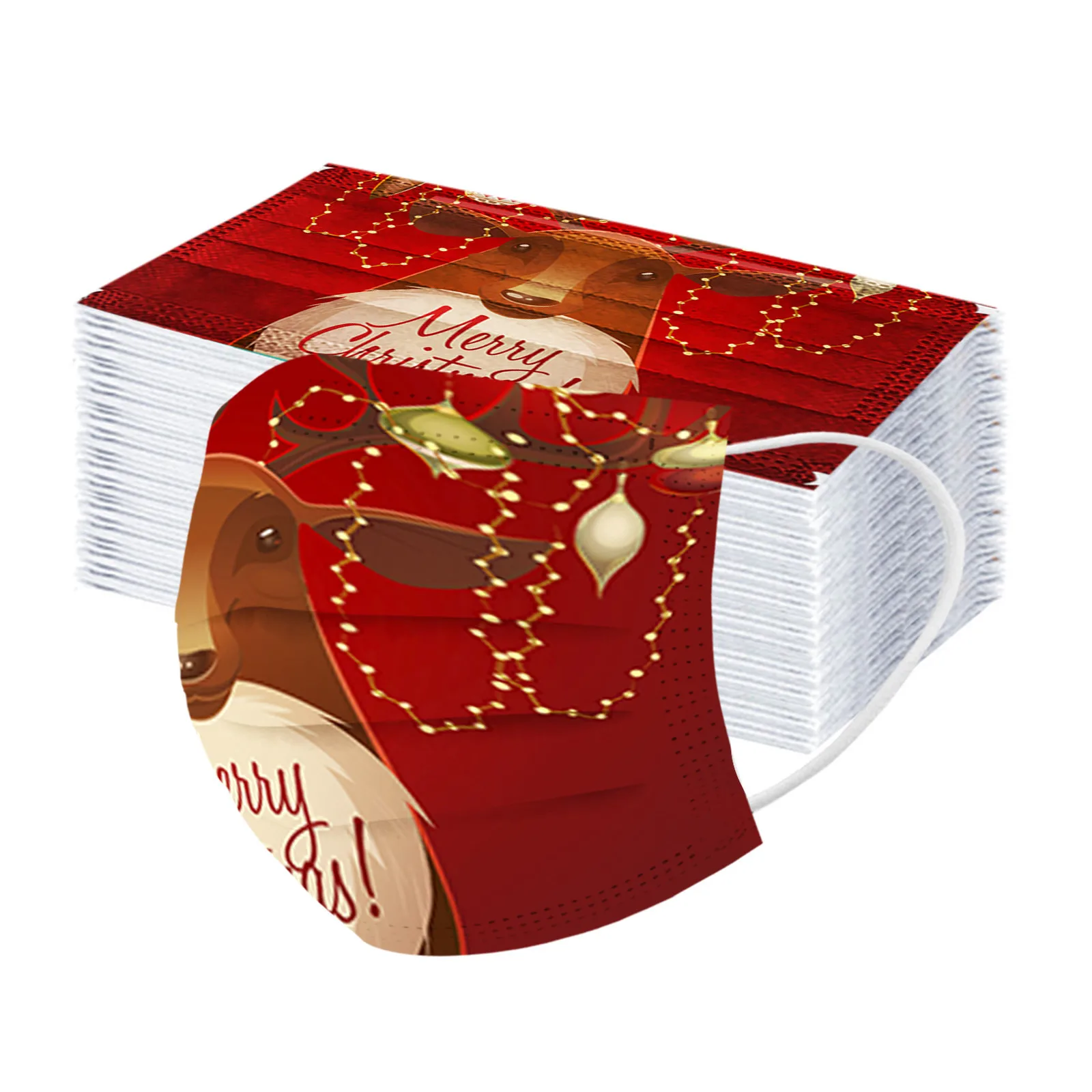 Цветная одноразовая Защитная маска для взрослых с рисунком красного оленя, трехслойная маска, Рождественская маска