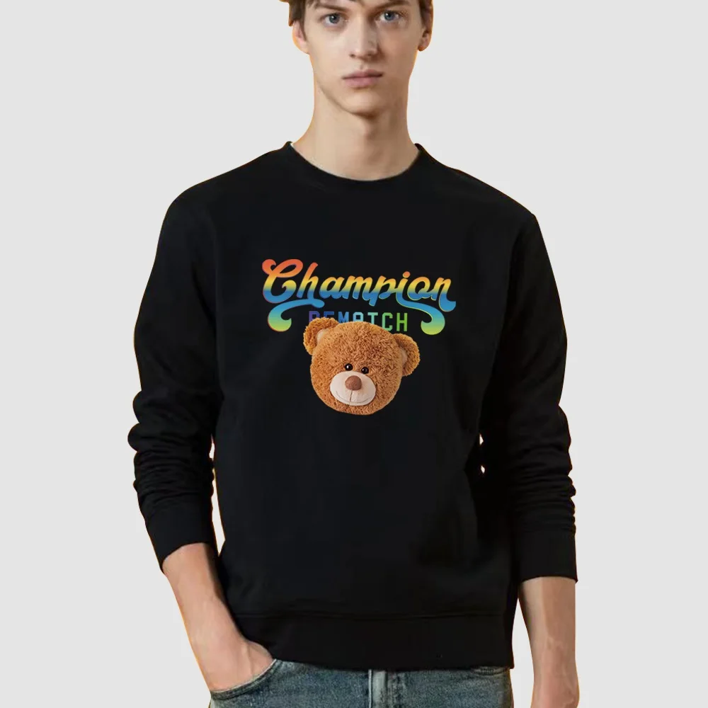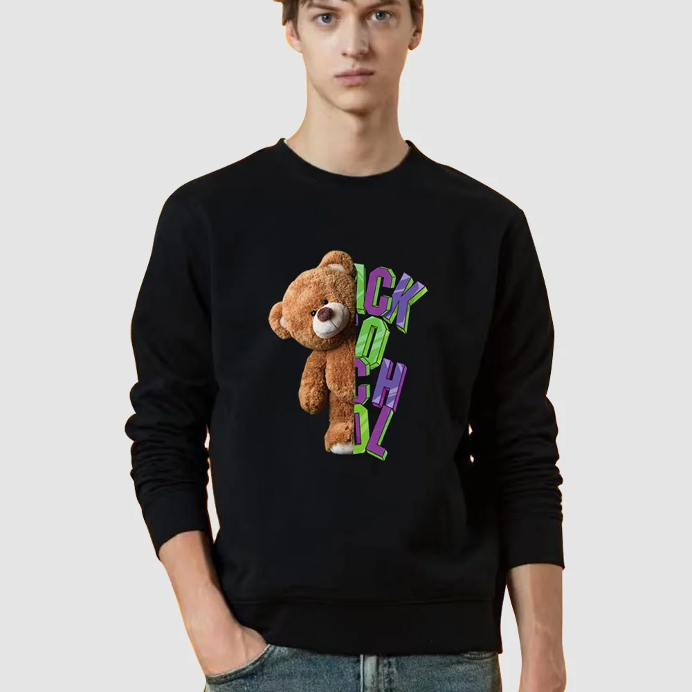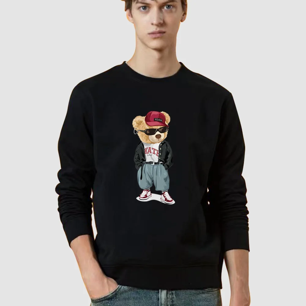 Толстовка мужская с круглым вырезом, Модный пуловер с принтом медведя, топ с капюшоном, уличная одежда, Свободный пуловер, весна-осень