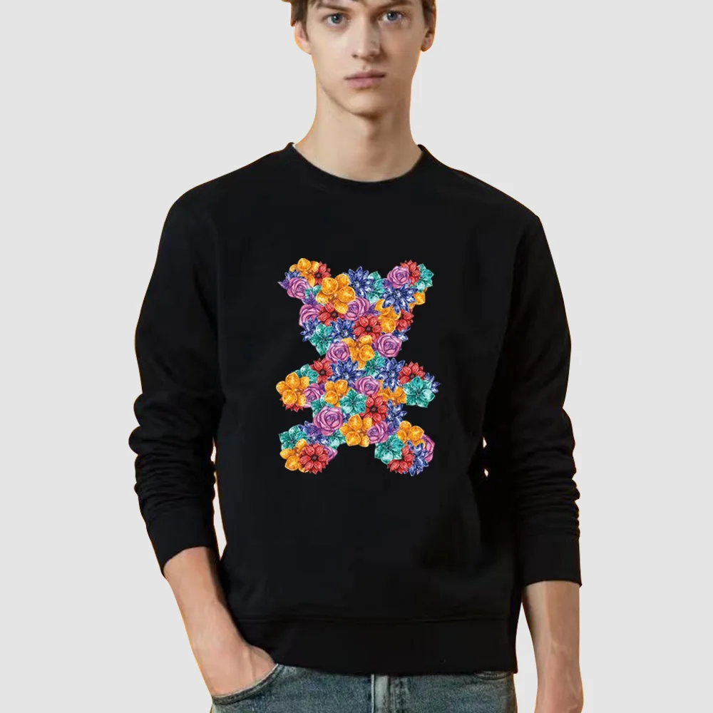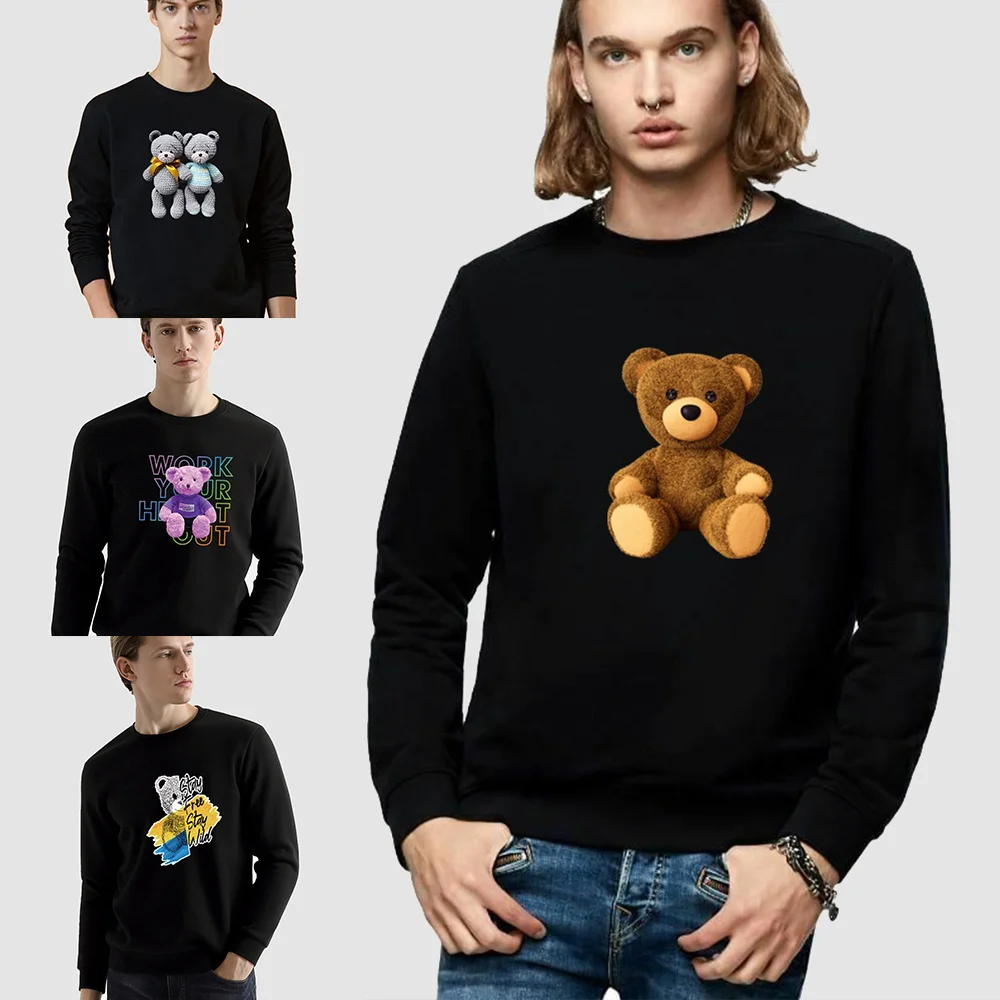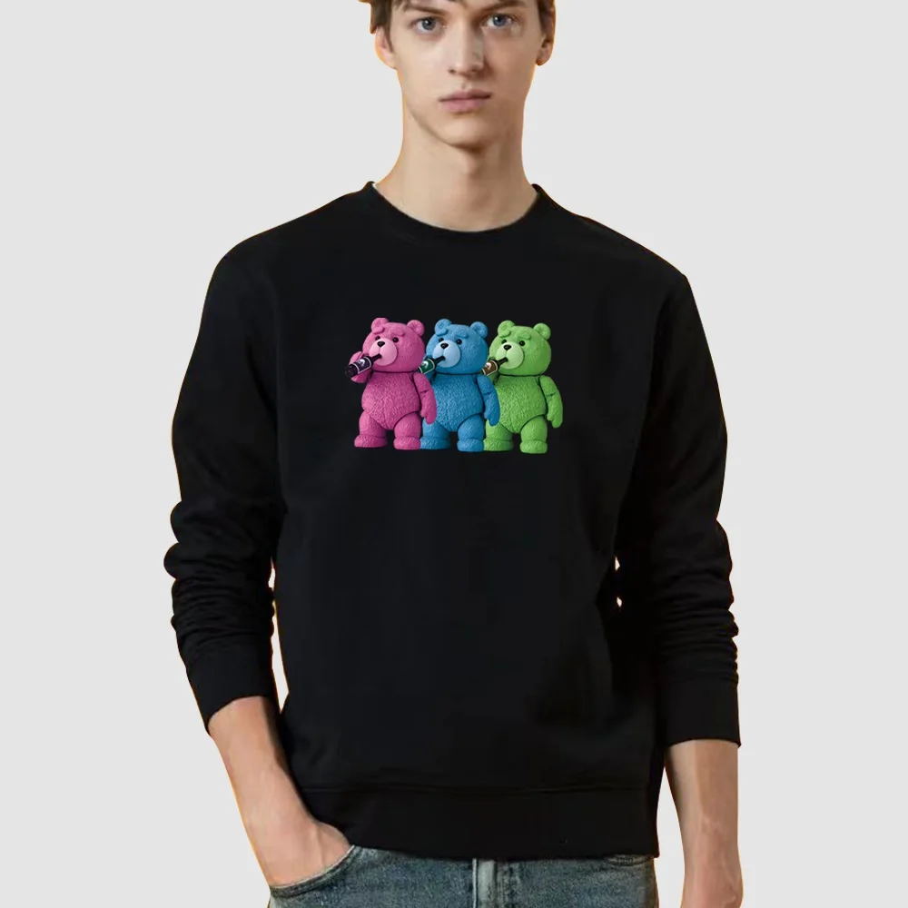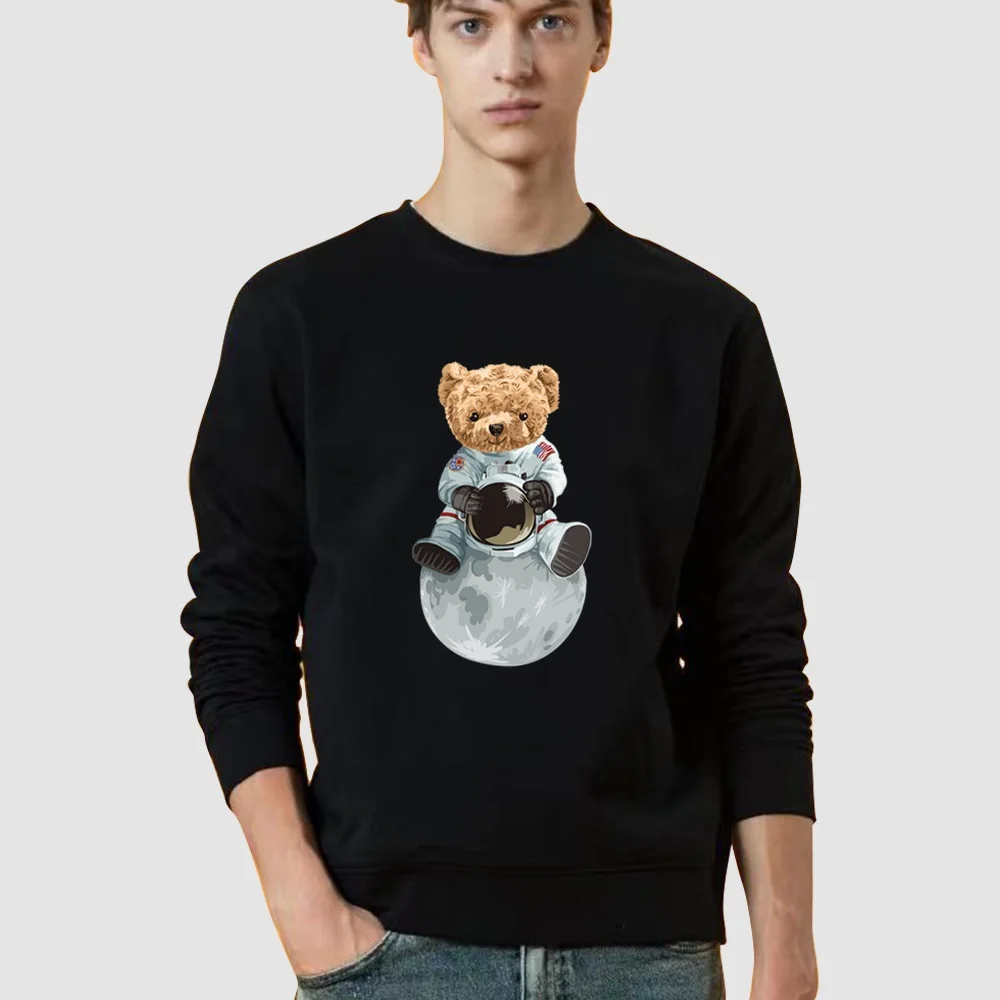 Толстовка мужская с круглым вырезом, Модный пуловер с принтом медведя, топ с капюшоном, уличная одежда, Свободный пуловер, весна-осень