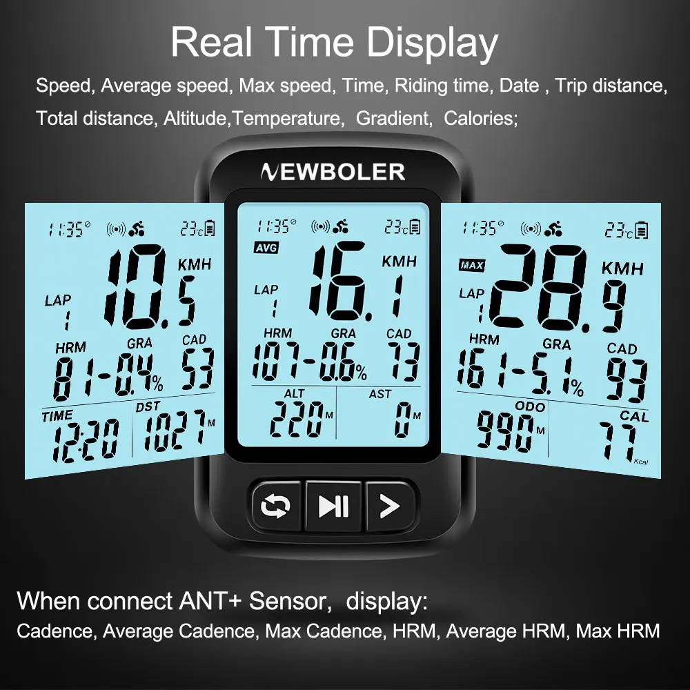 Беспроводной Велосипедный компьютер GPS NEWBOLER Спидометр Одометр ANT + датчик синхронизации водонепроницаемый с кронштейном датчика частоты вращения педалей STRAVA