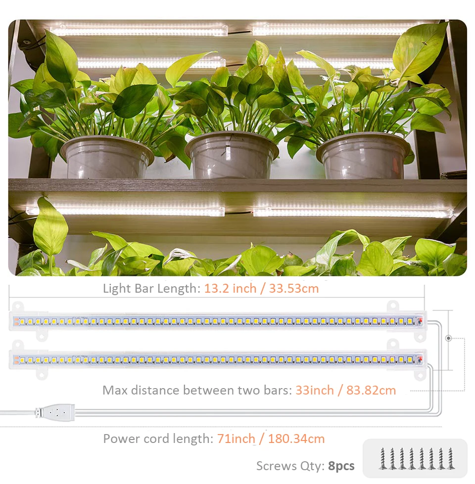 25%, 50%, 75%, 100% прочности.48 светодиодный Кристалл для каждого стержня излучает достаточно светильник, чтобы покрыть все этапы роста растений, не беспокоясь о сжигании растенийЗаглушка и место-светильник для выращивания поставляется с винтами и двухсторонней лентой для легкой установки. Компактный дизайн подходит для различных приспособлений и поверхностей. Шнур питания 71 дюймов/115 дюймов в длину для легкого захвата.