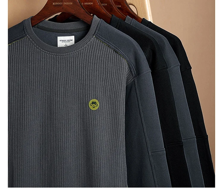 Мужская футболка с длинным рукавом KUEGOU, черная Винтажная футболк...