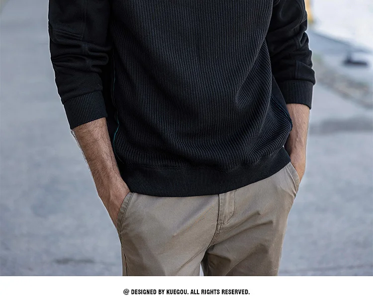 Мужской облегающий пуловер KUEGOU, черный однотонный Повседневный т...