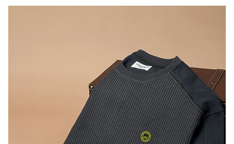 Мужской трикотажный свитер с вышивкой KUEGOU, черный трикотажный св...
