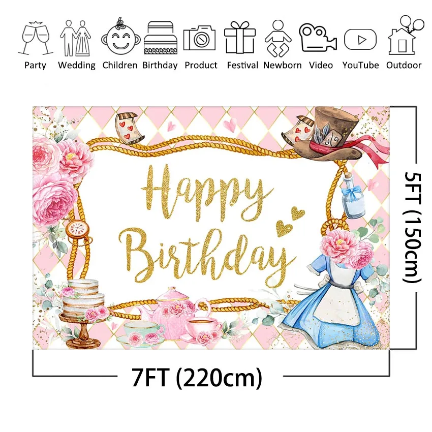 Детские Алиса в стране чудес фон для дня рождения для девочек детск...