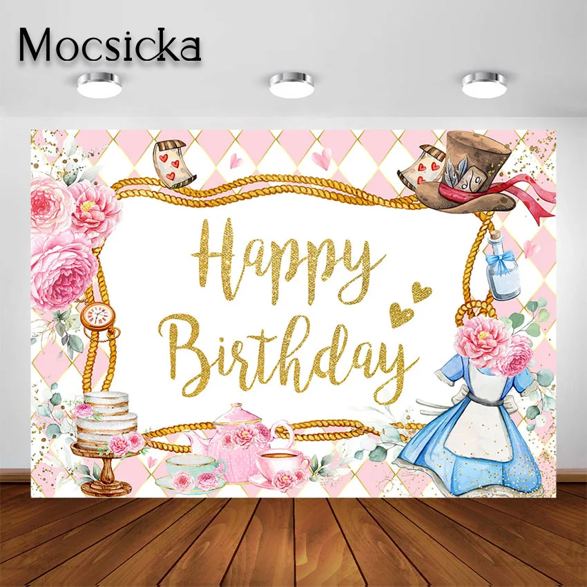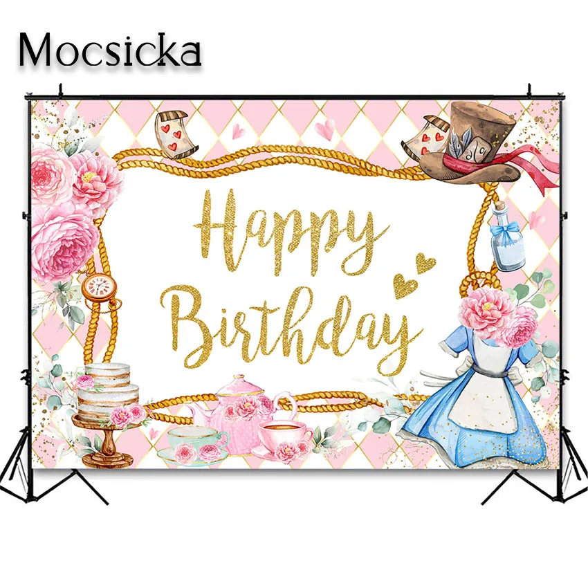 Фон Mocsicka с изображением чайвечерние ринки, принцессы, украшения для первого дня рождения, Алиса в стране чудес, фотосессия