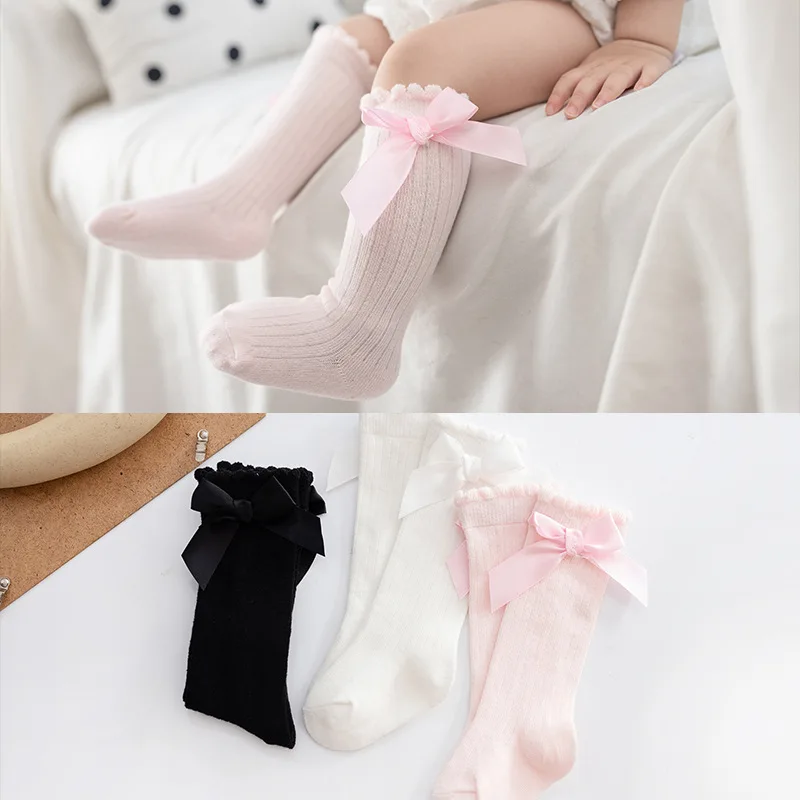 Носки до колен для девочек, хлопковые носки с бантом для новорожден...