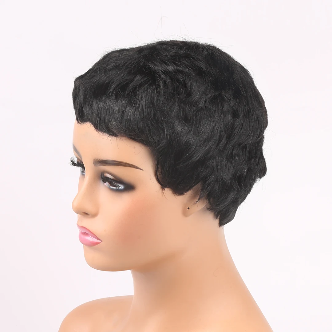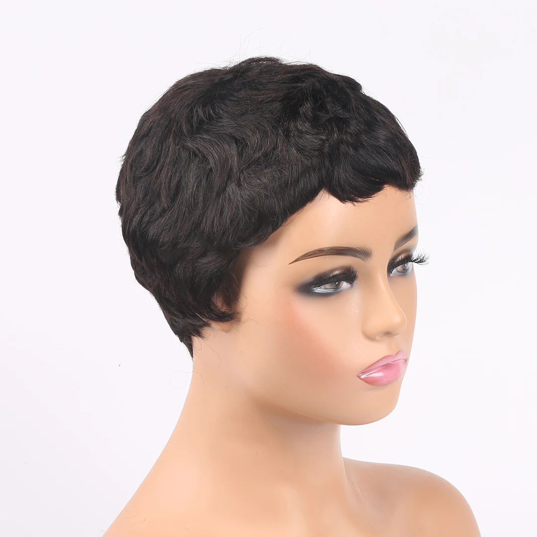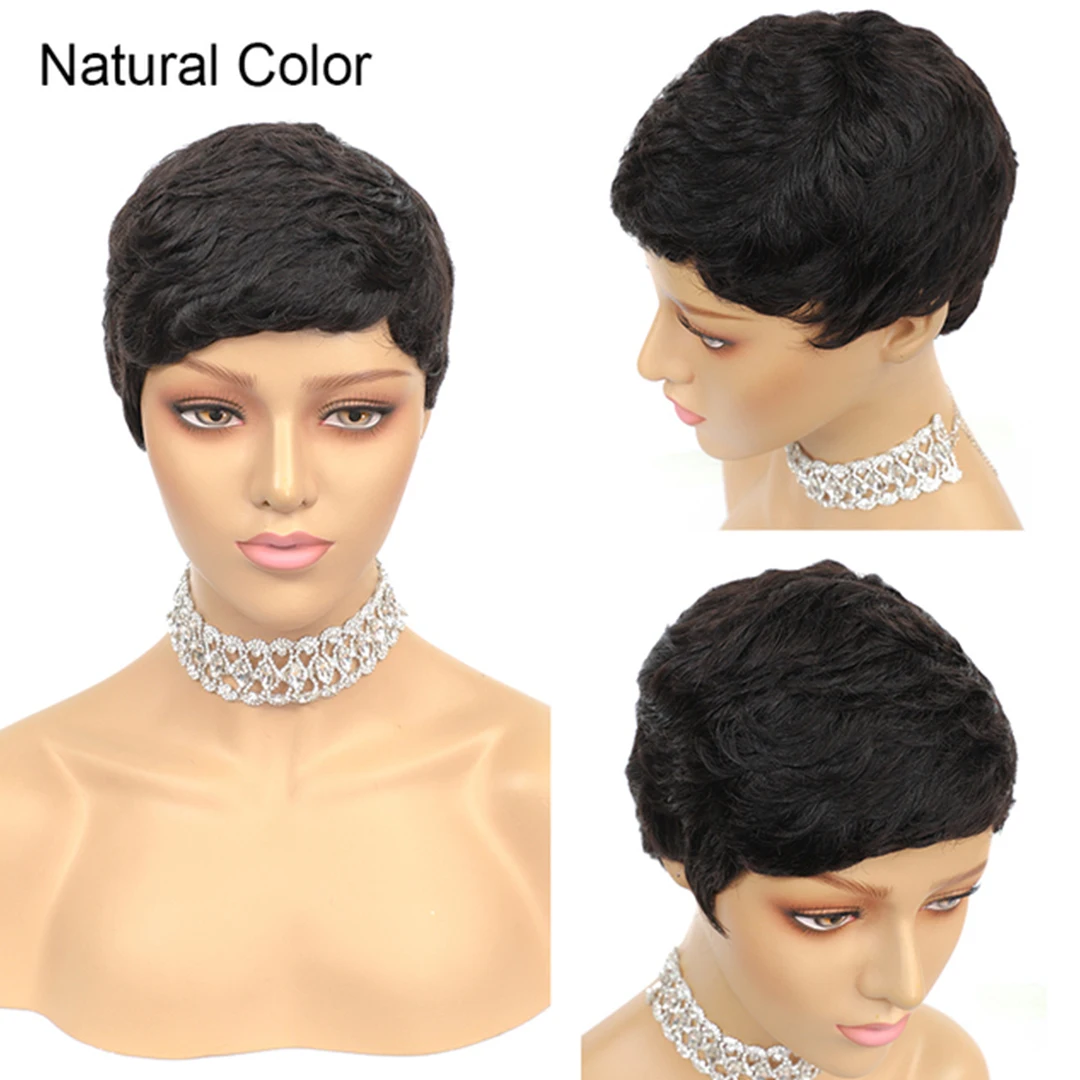 Парики Pixie Cut, человеческие волосы с челкой, коричневые, 4 цвета, человеческие волосы, парики для женщин, полный машинный парик, бесклеевые волосы, бесплатная доставка