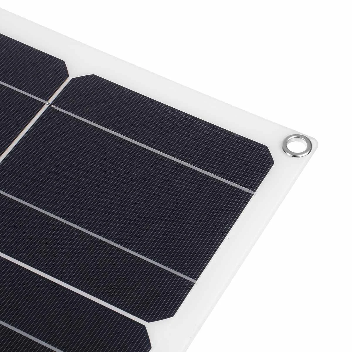 Особенности:-- Гибкая солнечная панель-Высокая мощность, подходит для улицы и RV-- Эва (этиленвинилацетат) + PET защитная плёнка для переднего панель, гибкий, светильник и прочный, светильник вес-Эффективность монокристаллических кремниевых солнечных элементов составляет 20%.-- 4x люверсов и 2x бесплатно Ranunculus более удобны в установке.-Водонепроницаемость IP65, подходит для использования на открытом воздухе под дождем, светильник.-- Упаковать правильно с губкой и угловыми прокладками.-Он может использоваться в аккумуляторной машине, автомобиле, RV, яхте, корабле, самолете, спутнике, космической станции, открытом разведении, посадке, туризме, солнечной уличной лампе, научно-исследовательских проектах и т. д.