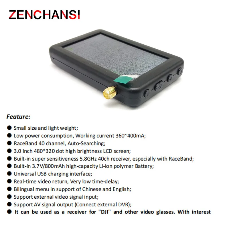 5,8 GMini FPV-монитор, 3-дюймовый IPS ЖК-экран 480*320, монитор автоматического поиска, встроенный аккумулятор 3,7 в800 мАч с функцией защиты от интересов