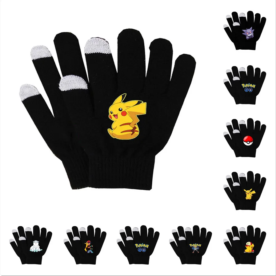 Аниме Покемон трикотажные перчатки Pikachu зимние шерстяные мужские осенние Eevee Squirtle Charmander Bulbasqur Gengar зимние теплые женские перчатки с сенсорным экраном лыжные перчатки рождественские подарки