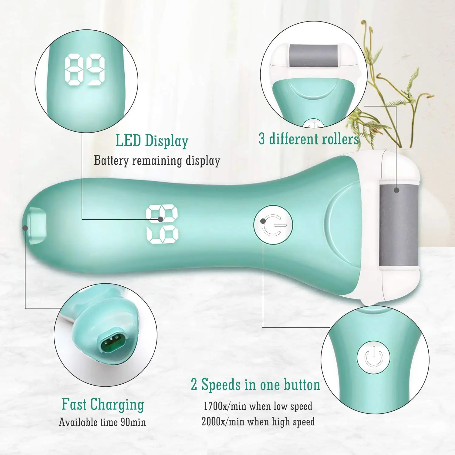 Электрическая пилка для ног с зарядкой, шлифовальный инструмент для педикюра и пяток, профессиональный инструмент для ухода за ногами, эффективное удаление огрубевшей кожи и мозолей