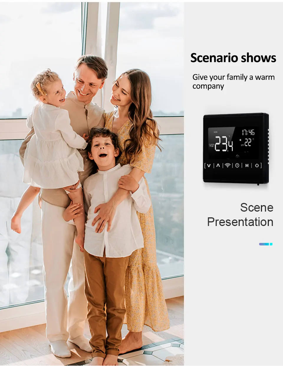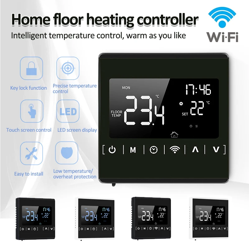 1. Функция памятиЗапомните все настройки после внезапного отключения питания. Когда питание включено снова, вам не нужно сбросить его.2. Программируемая функцияПоддержка 5 + 2, 6 + 1 или 7 дней еженедельно программируется, шесть периодов программируемого контроля температуры.3. Блокировка для детей, чтобы избежать неправильной работы.4. Функция WifiТермостат wifi может управляться мобильным приложением, где бы вы ни находились.5. Поддержка голосового управления Alexa. (Только модель WiFi)6. Приложение поддерживает большинство популярных языков.7. Поддержка переключения для отображения Фаренгейта.