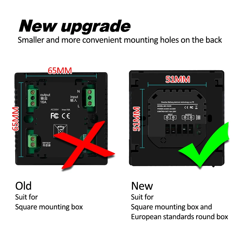 MH1823/MH1823S/MH1823L Поддержка WIFI (приложение TUYA/приложение Smart life), может быть установлен в Монтажной Коробке ЕС.MH1823 тип используется для электрического напольного отопления, например, электрического нагревательного кабеля, электрической нагревательной пленки, электрического нагревательного коврика и других электрических нагревателей.MH1823S тип используется для нагрева воды, как электрический клапан, водонагреватель привода.MH1823L тип используется для газового котла, имеет два сухих контакта.