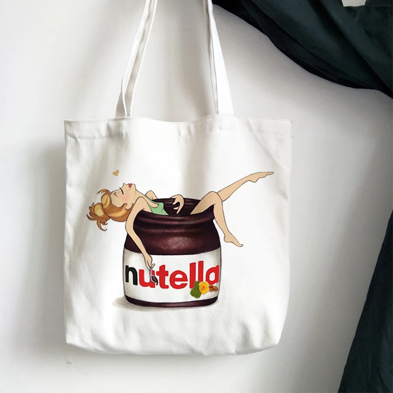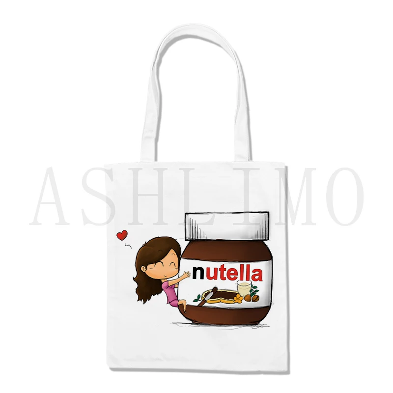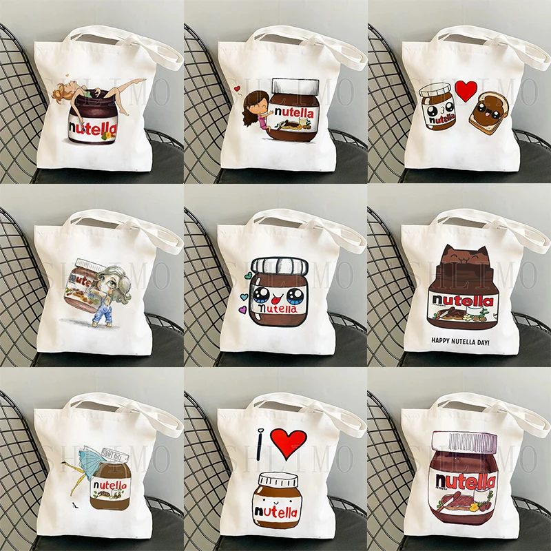 Сумка для покупок Kawaii Nutella, милая Повседневная сумка, сумка-тоут в эстетике для женщин, холщовая сумка-шоппер, вместительная тканевая сумка