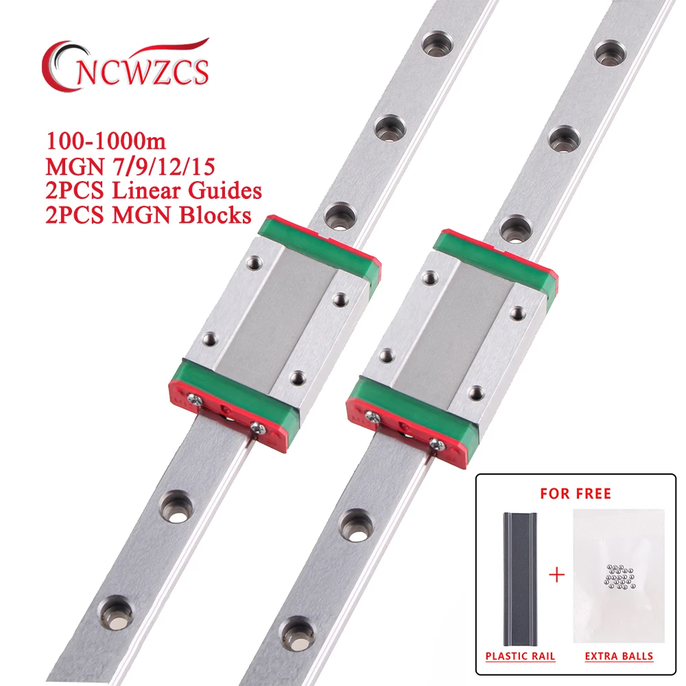 Миниатюрная линейная направляющая MGN7, MGN12, MGN15, MGN9, 100-1000 мм, 2 шт., линейная направляющая MGN, Каретка MGN, деталь для 3D-принтера с ЧПУ, 2 шт.