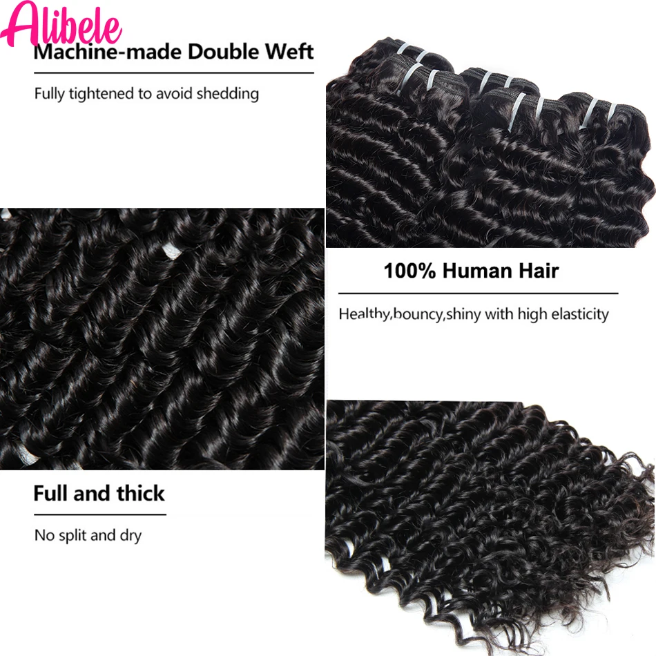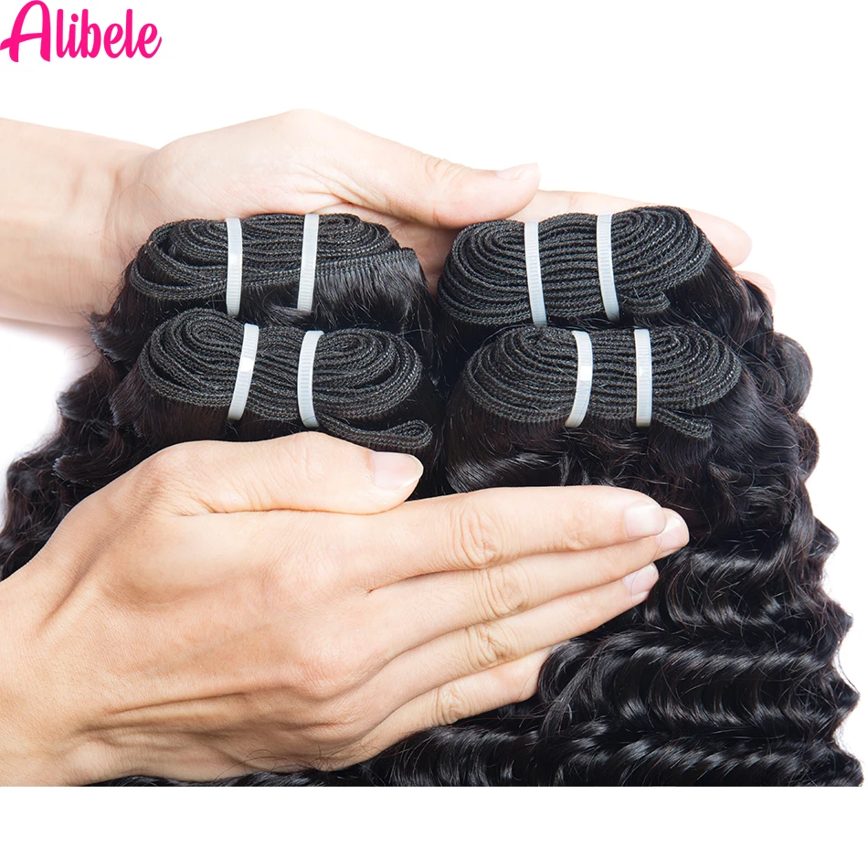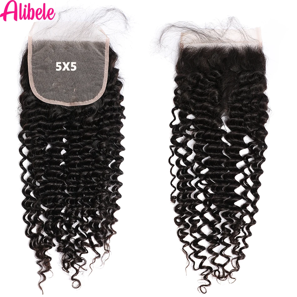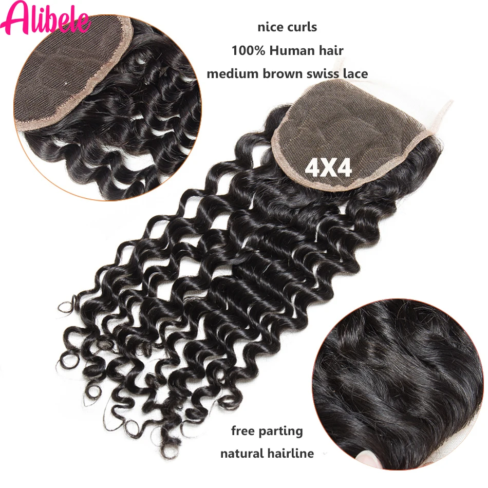 Alibele 5x5 HD кружевные пучки с глубокими волнистыми волосами, бразильские волнистые пучки человеческих волос, пучки с прозрачной кружевной застежкой 4x4