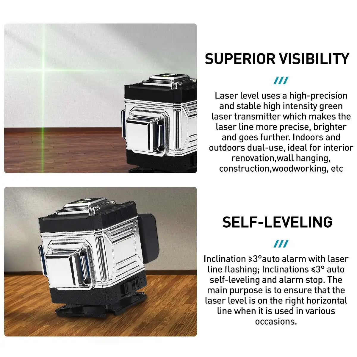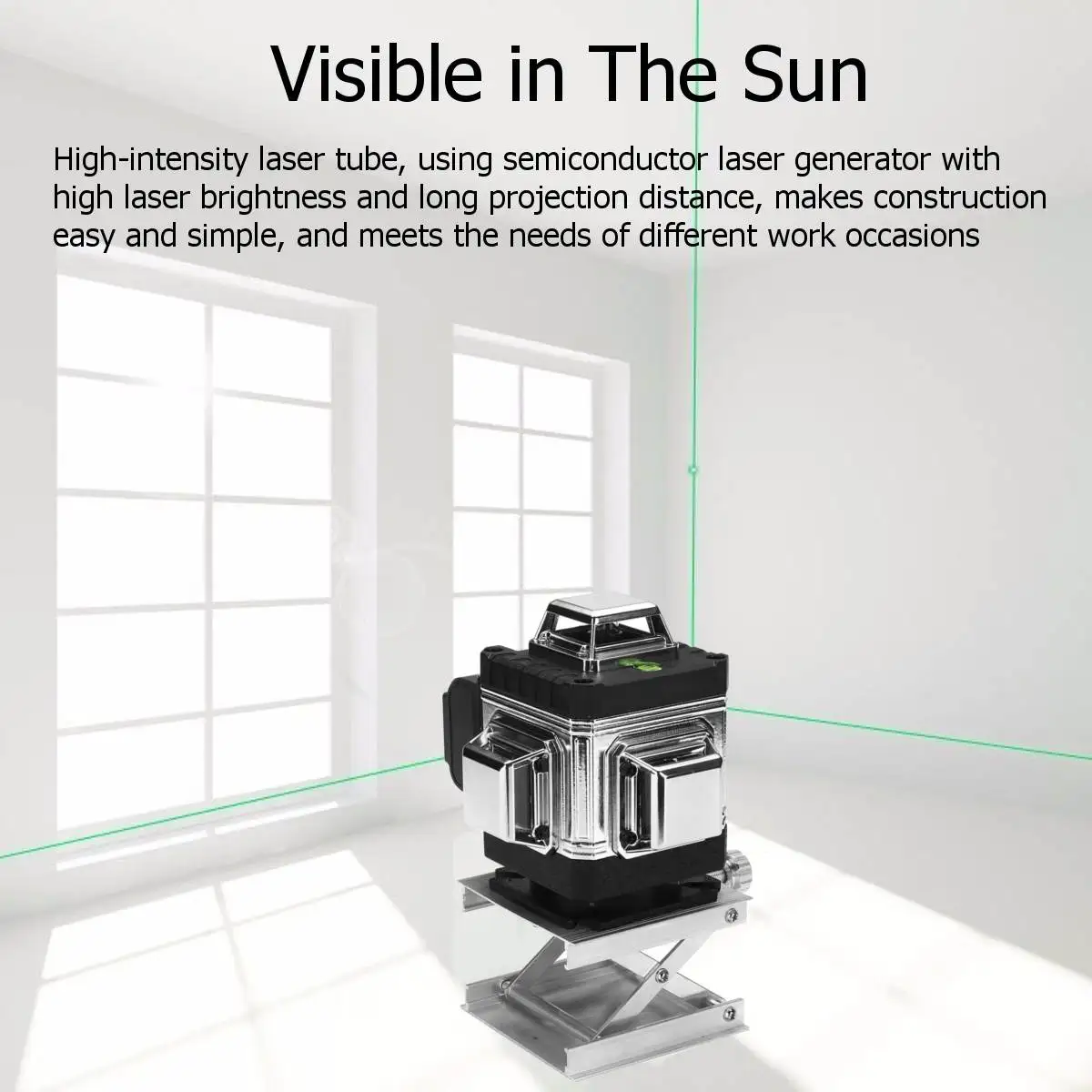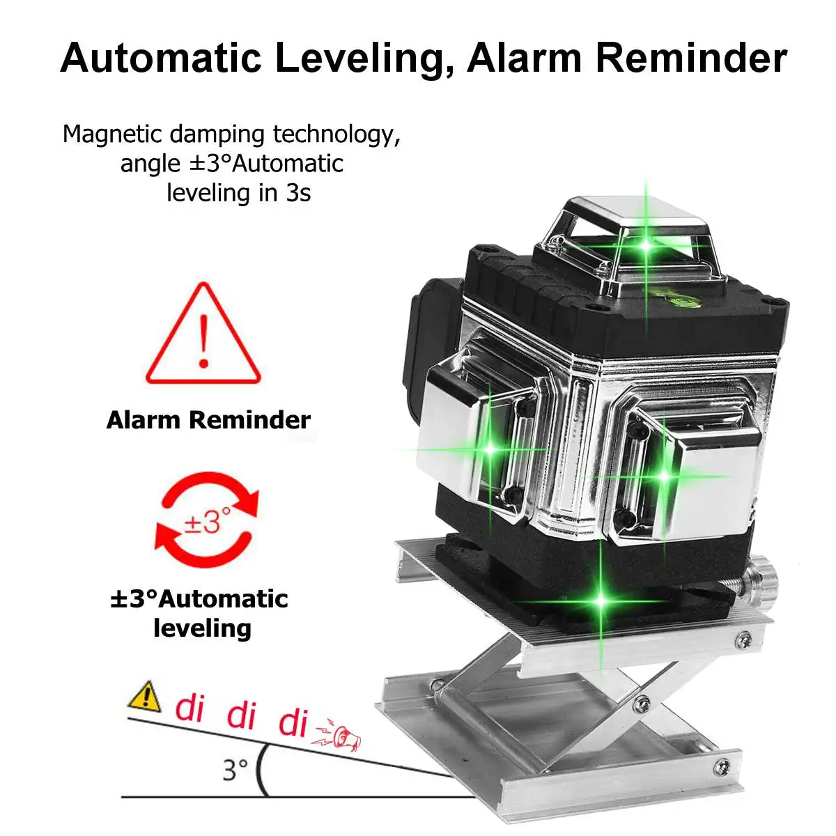 Самонивелирующийся лазерный уровень, 16 линий, 4D, 360 градусов, горизонтальный и вертикальный крест, супермощный зеленый лазерный уровень, автоматический строительный инструмент