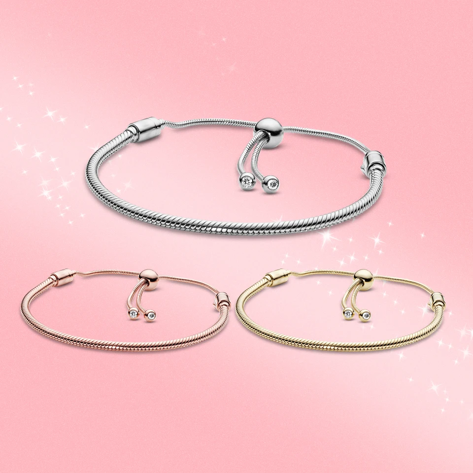 Женский браслет из серебра 100% пробы, с подвеской из розового золота