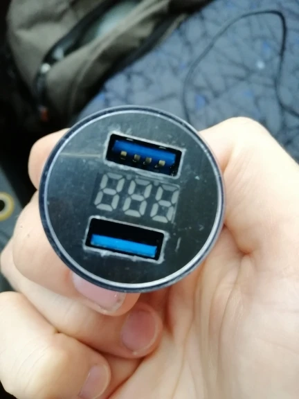 Автомобильное зарядное устройство с двумя USB-портами и вольтметром...