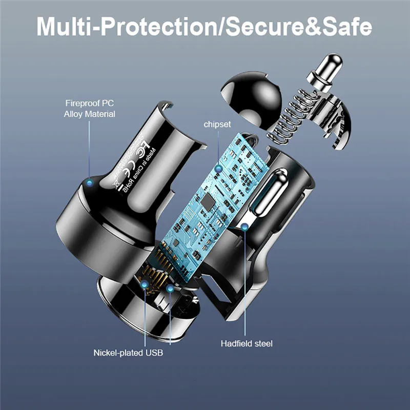 Автомобильные зарядные устройства А, без дисплея, 2 порта, быстрая ...