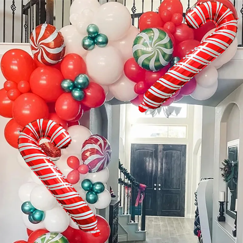 119 шт. рождественские тростниковые конфеты, фольгированные воздушные шары, гирлянда, красные, белые латексные шары, Рождественское украшение, украшения для дня рождения, товары для декора