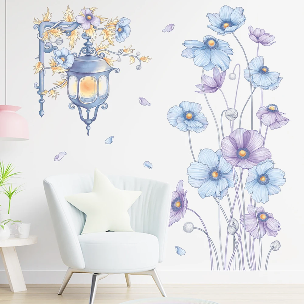 Синие фиолетовые цветы наклейки на стены DIY обои стикер уличный светильник виниловый пвх стикер на стену s для гостиной спальни домашний декор