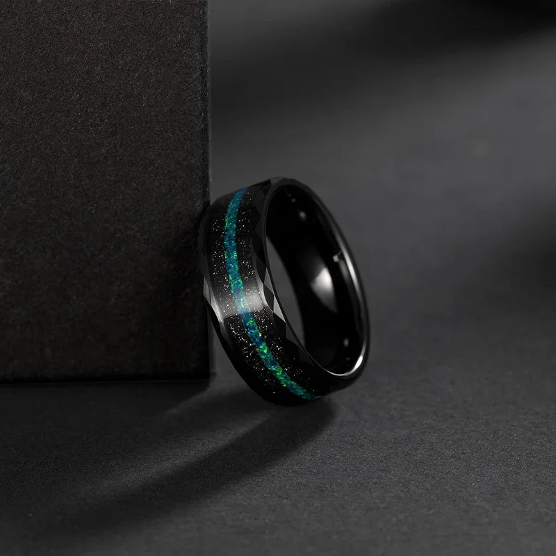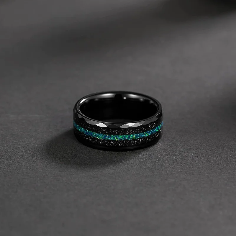 Обручальные кольца TIGRADE мужские, вольфрамовые многогранные обручальные кольца с черным песком и зелено-Синим Опалом, удобная посадка, 8 мм